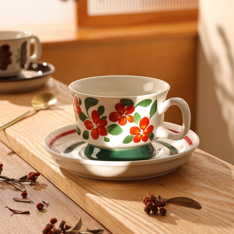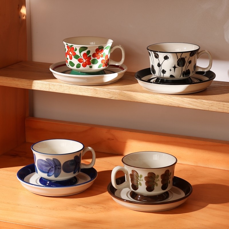 📚 复古咖啡杯设计感小众陶瓷中古杯碟套装女士下午茶餐具高端咖啡杯