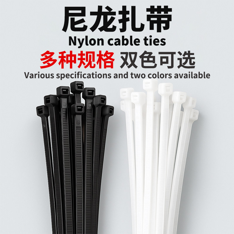 📚 塑料尼龙扎带自锁固定卡扣式束理勒拉紧丝线捆绑电脑电线白色黑色