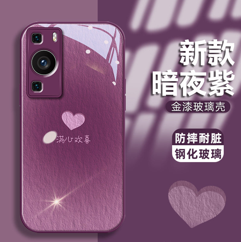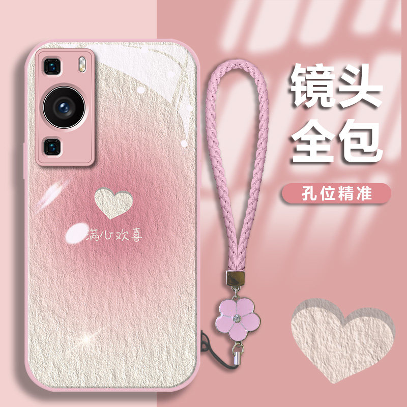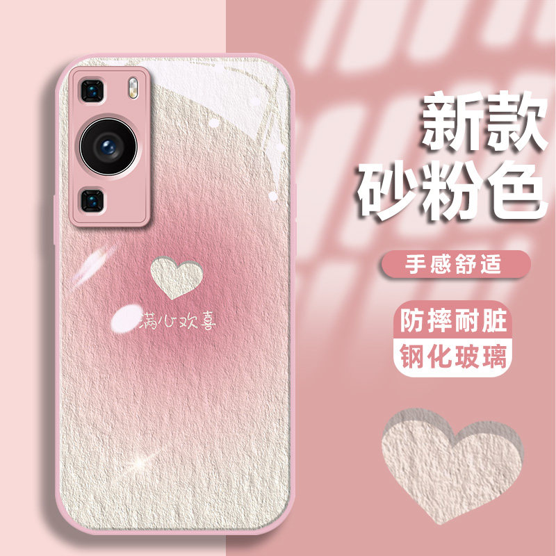 📚 适用于华为P60手机壳P60Pro手机套P50创意华为P40镜头全包p40pro金漆玻璃p30高级p30pro小众新款腮红满心欢喜