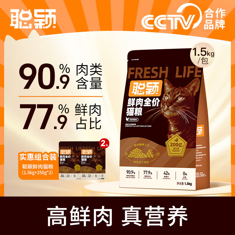 📚 聪颖猫粮旗舰店官方正品幼猫成猫无谷冻干鲜肉全价营养成猫粮
