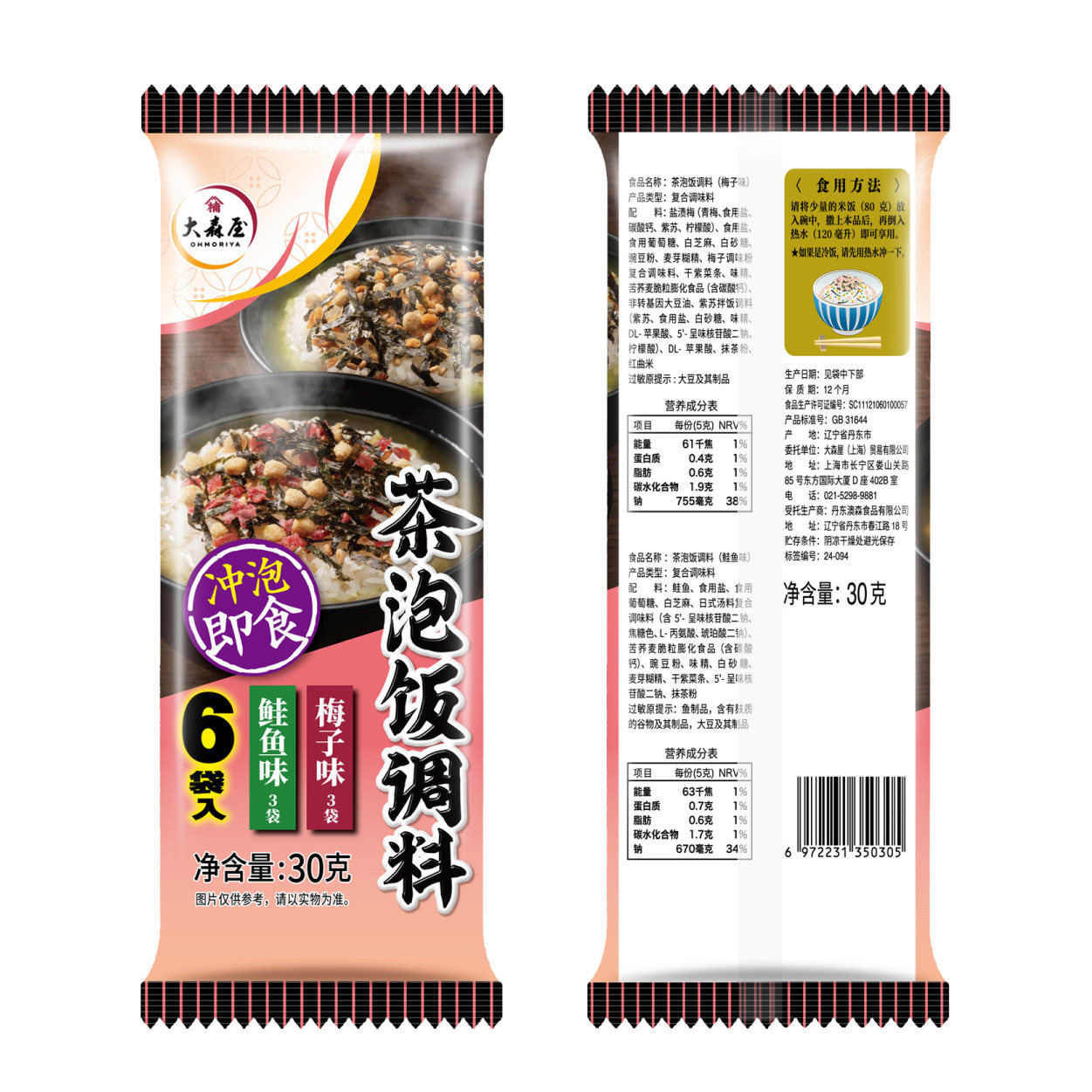 📚 大森屋茶泡饭调料30g梅子味鲑鱼味海苔日式风味拌饭料国产泡饭料