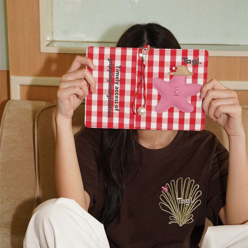 📚 Tagi. 24《塔皮星》想象海滩小花珍珠彩色格纹手提链条护照夹卡包