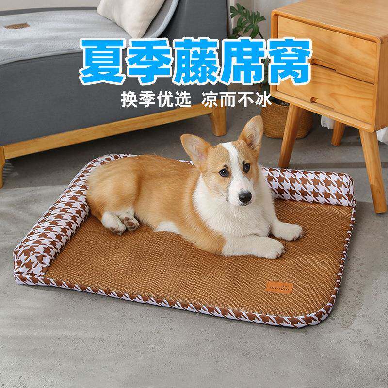 📚 宠物用品猫咪狗窝家用大草席猫窝冰窝半拆洗凉席垫子狗狗夏季冰垫