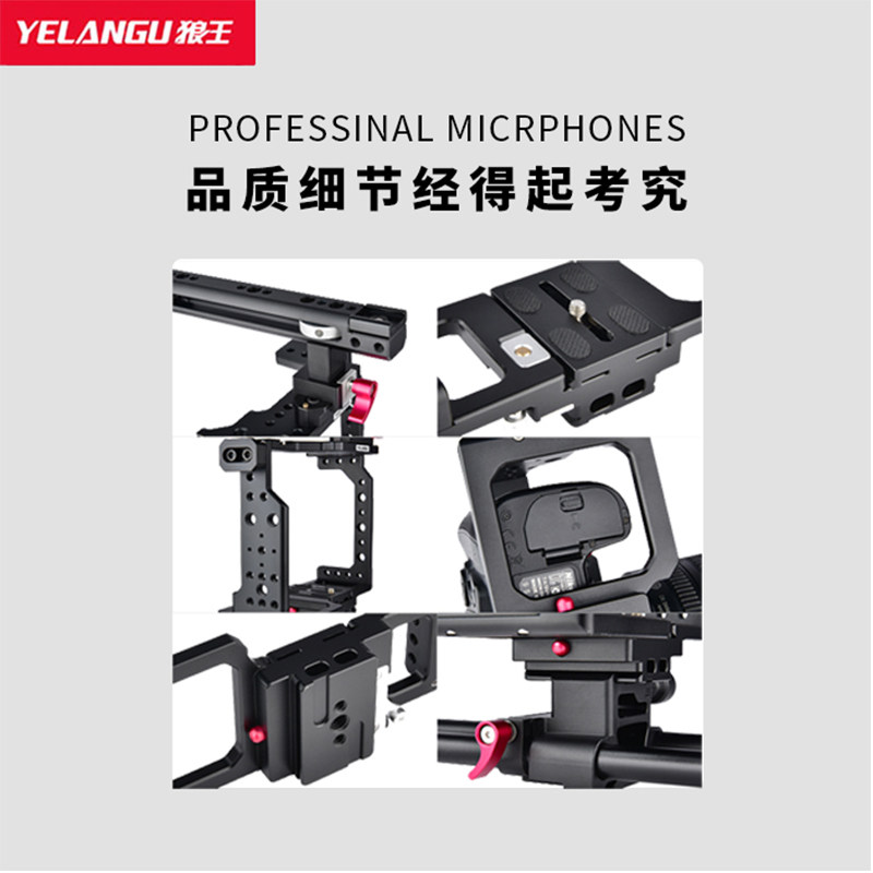📚 YELANGU狼王单反相机手持稳定器兔笼套件摄影通用肩扛支架适配索尼a7m4 A7RM5 a7c2佳能EOS R6 R5 R50尼康Zfc