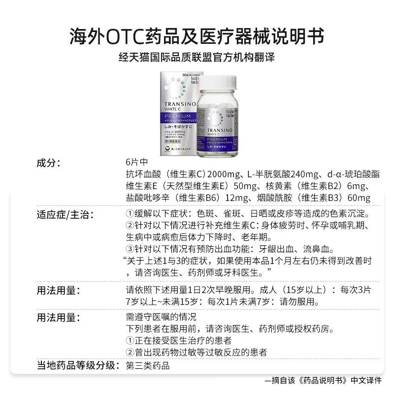 📚 第一三共TRANSINO传皙诺美白丸全身焕白淡化色斑雀斑VC抗黑180粒