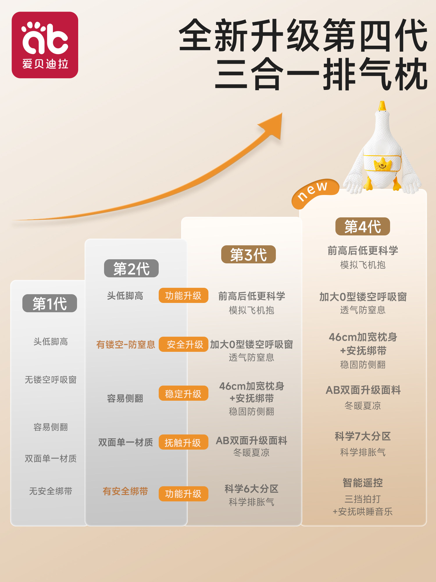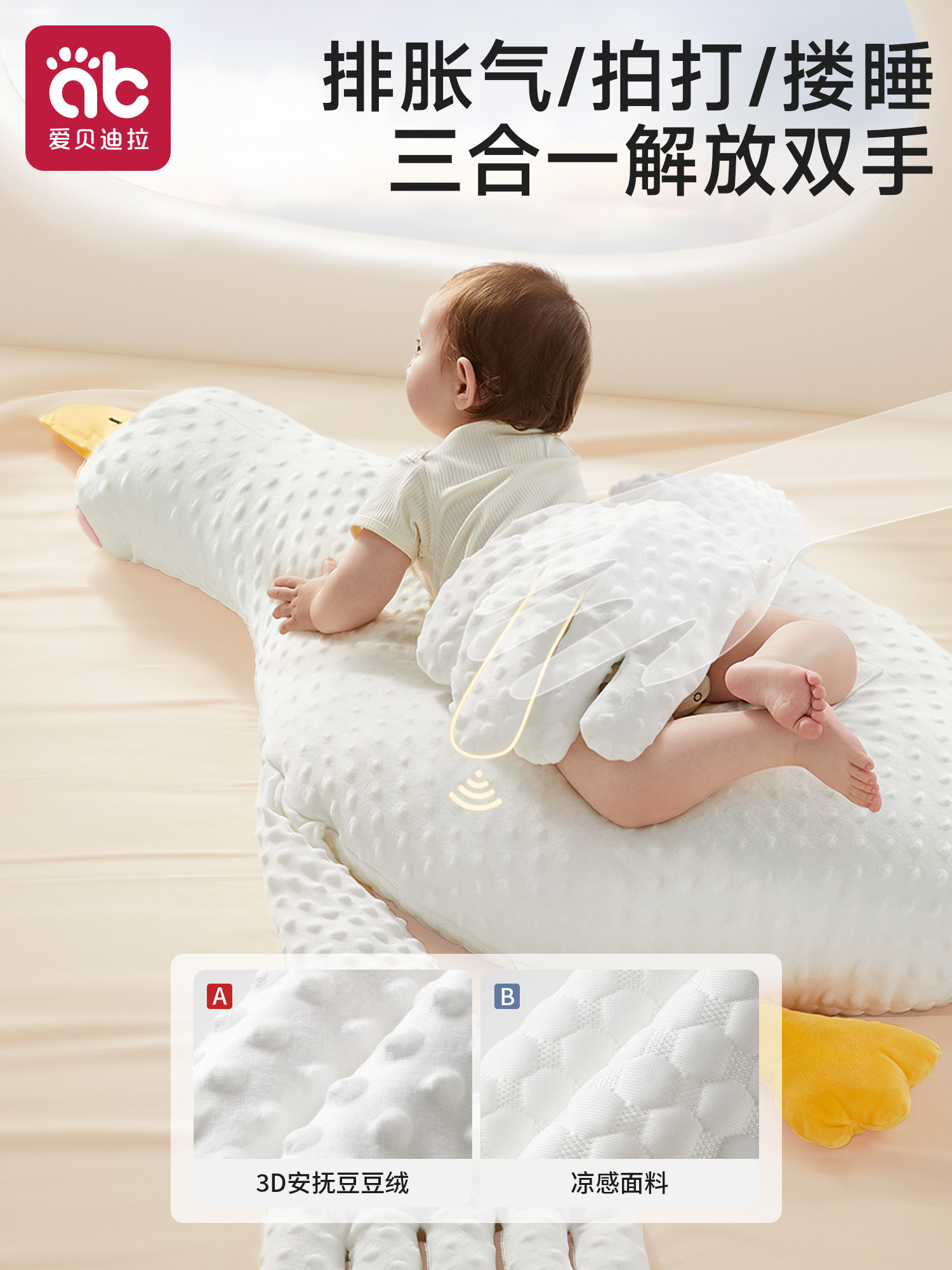 📚 大白鹅婴儿排气枕头宝宝二月闹趴睡觉新生安抚肠胀气拍打哄睡神器