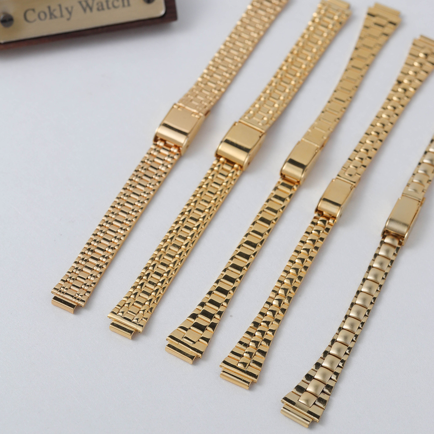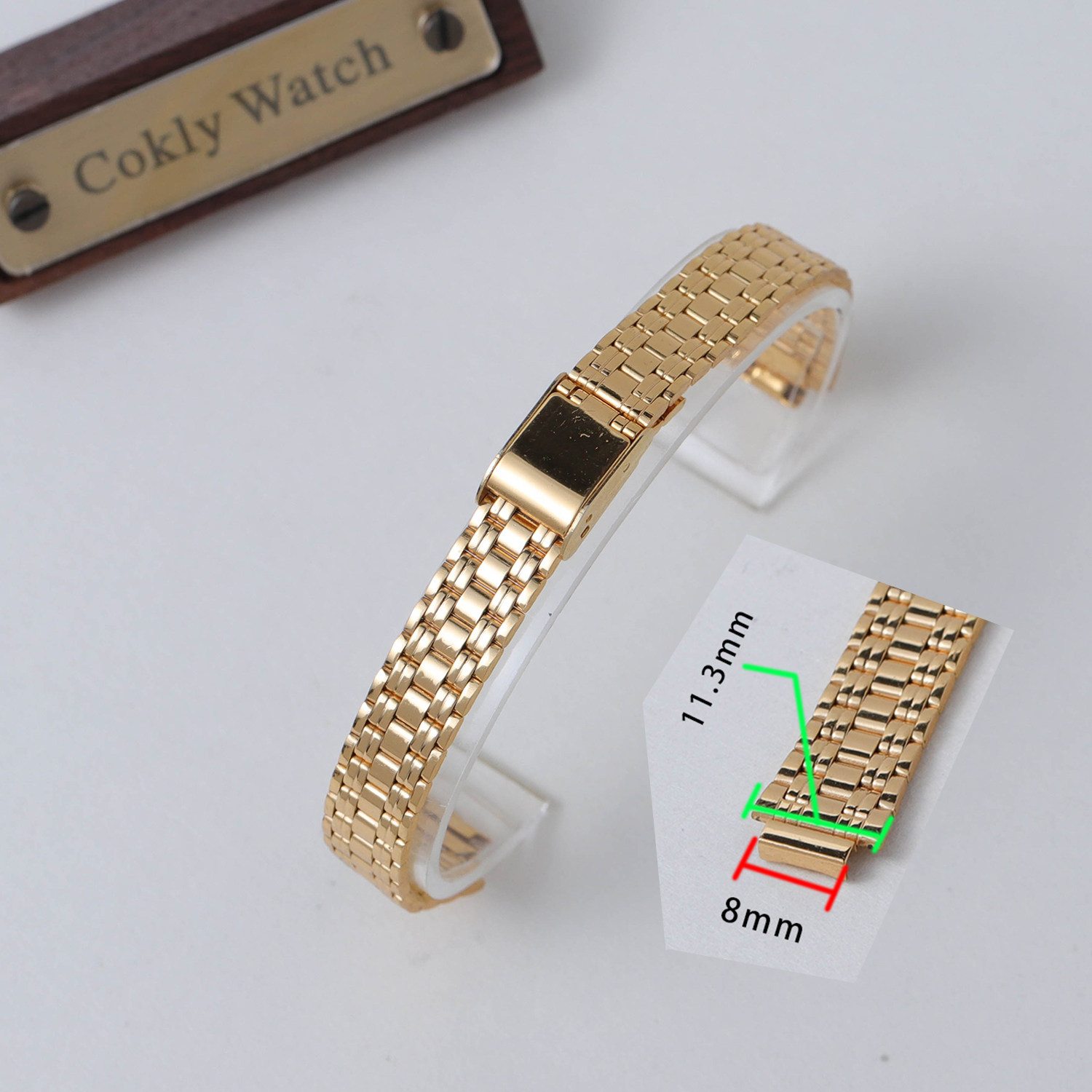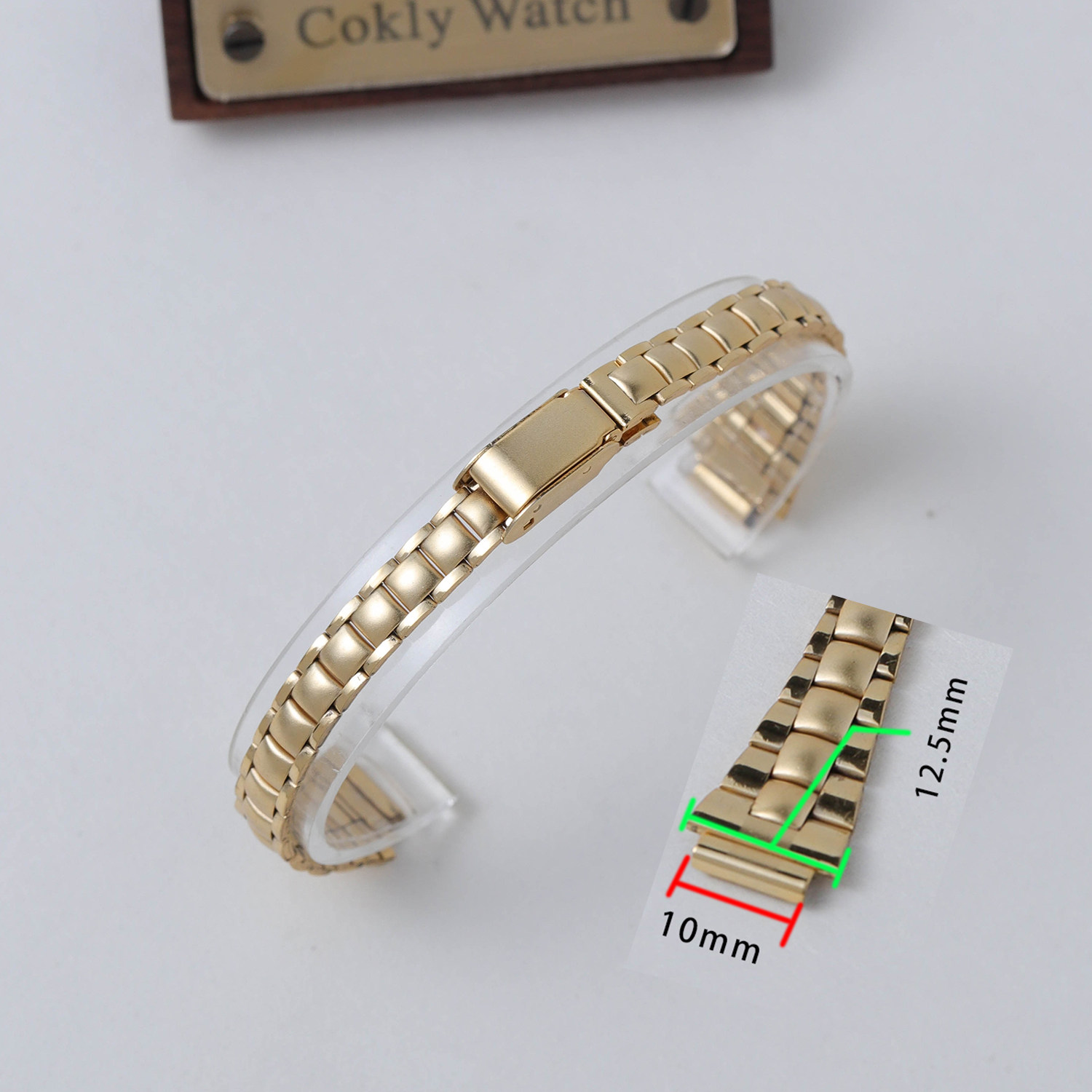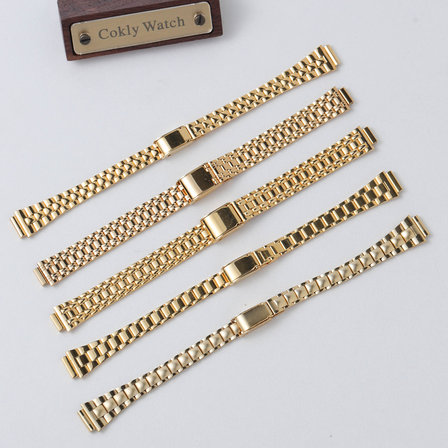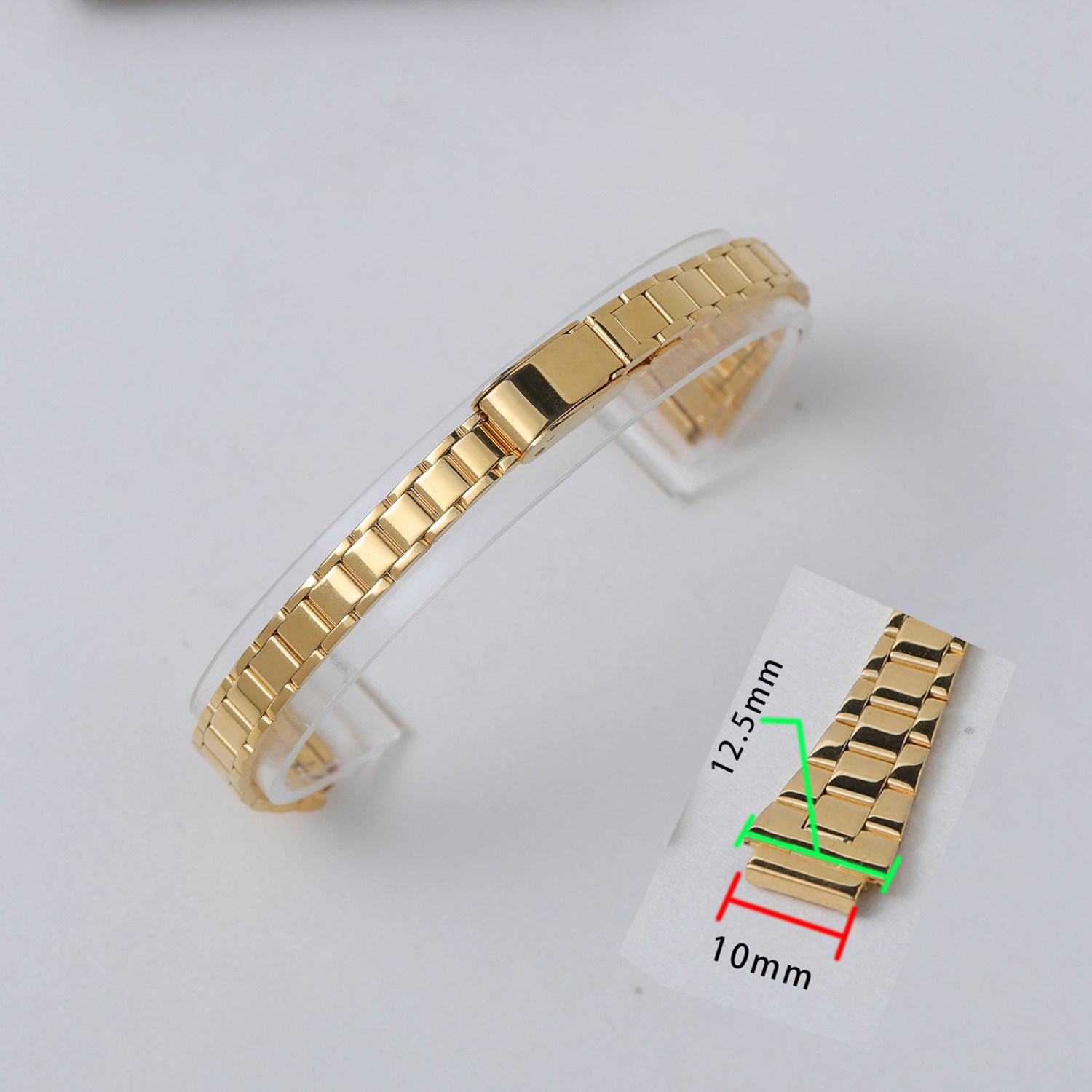 📚 8/10mm镀金金色手表带平口钢带表带上海海达宝石花钻石女士表带