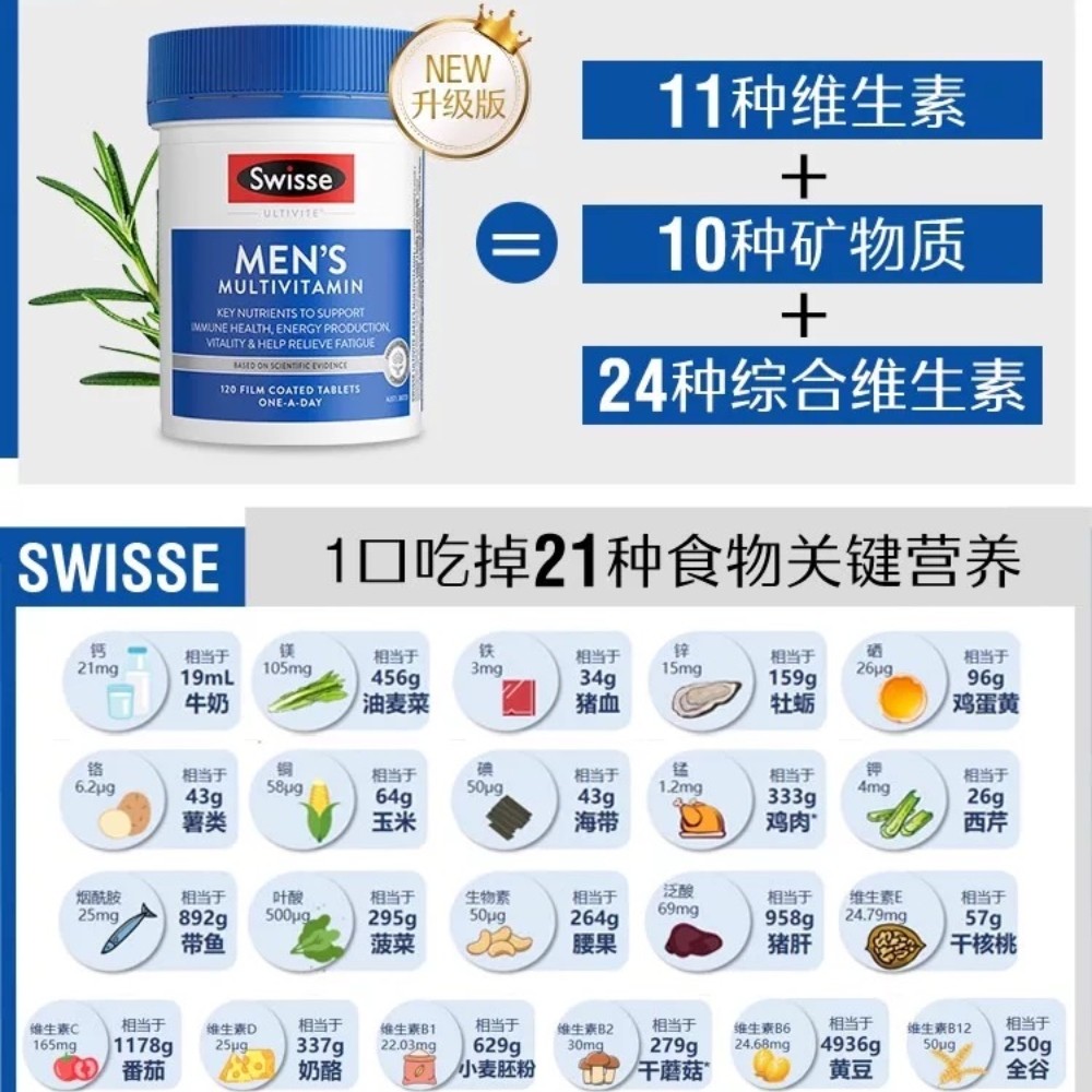 📚 澳洲Swisse男士复合多种维生素120粒提升免疫抵抗力升级版碘化钾