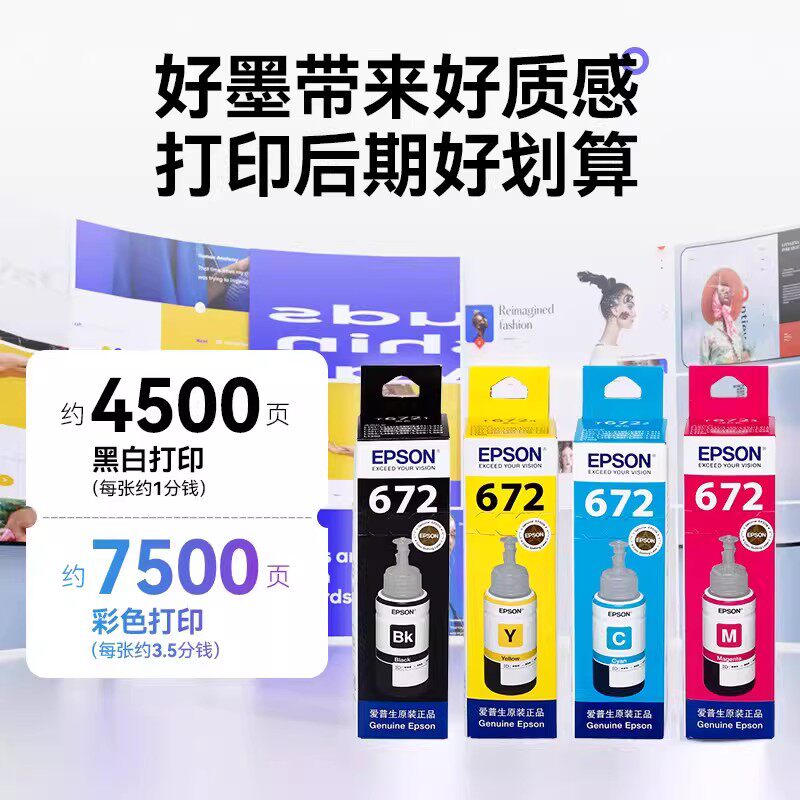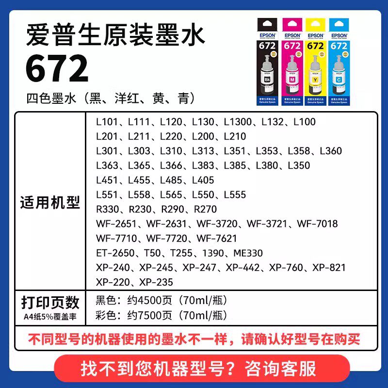 📚 爱普生672原装墨水L130 L301 L310 L360 L380 L405连供打印机