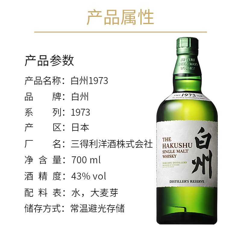 📚 三得利白州1973单一麦芽威士忌日本进口洋酒正品Suntory Hakushu