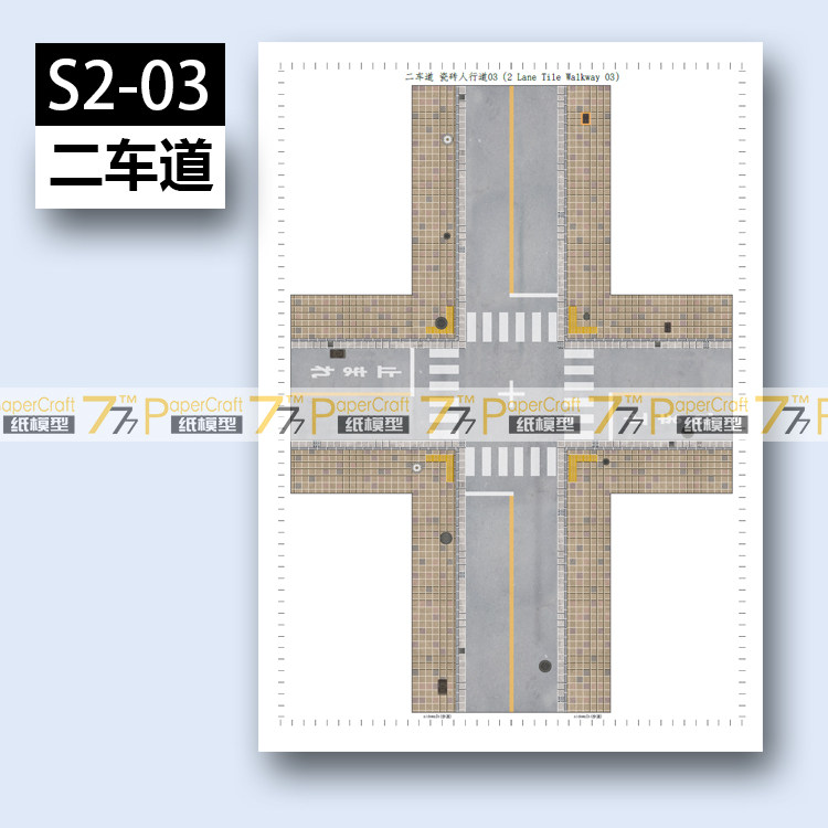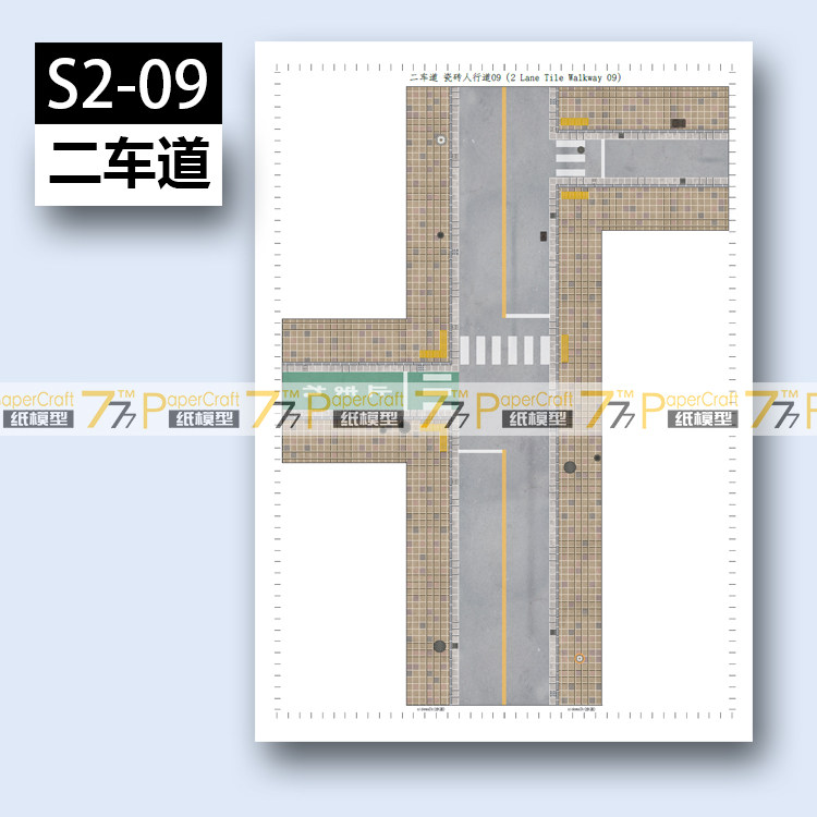 📚 [777纸模型] 二车道 马路瓷砖人行街道N-Scale 1:150日本建筑场景