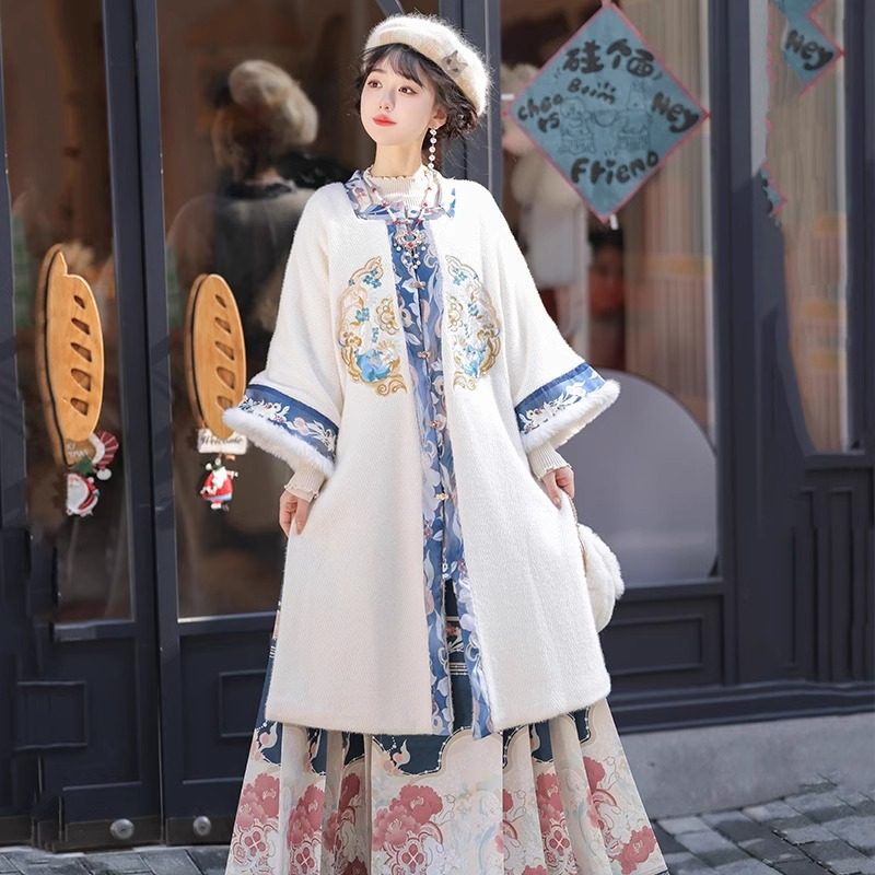 📚 原创明制汉服马面裙女秋冬季款中国风加厚加绒方领对襟衫外套改良