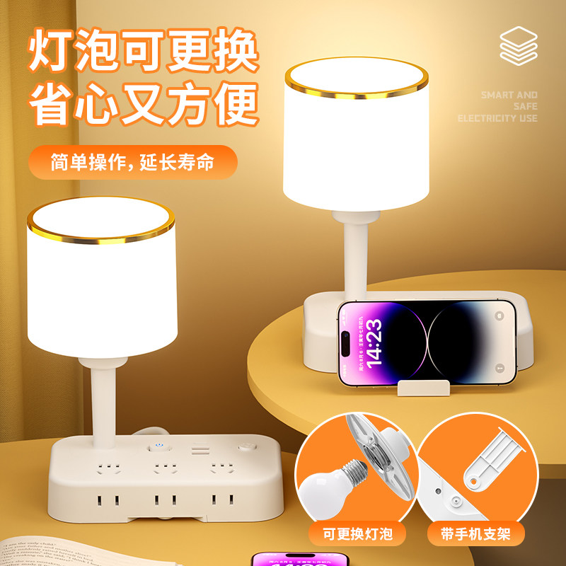 📚 【灯泡可更换】卧室床头灯插座一体USB夜间婴儿喂奶睡眠台灯插电