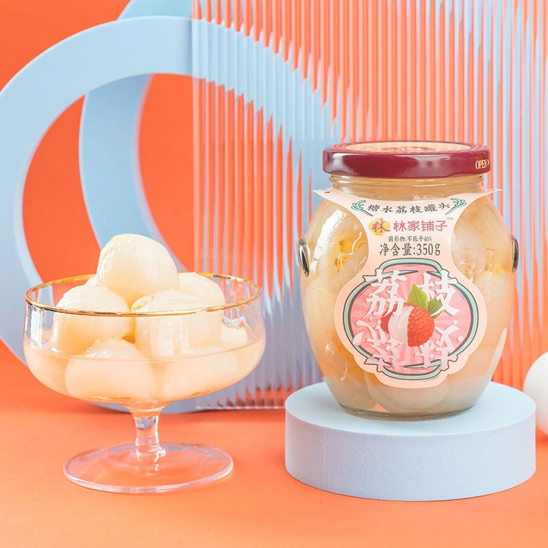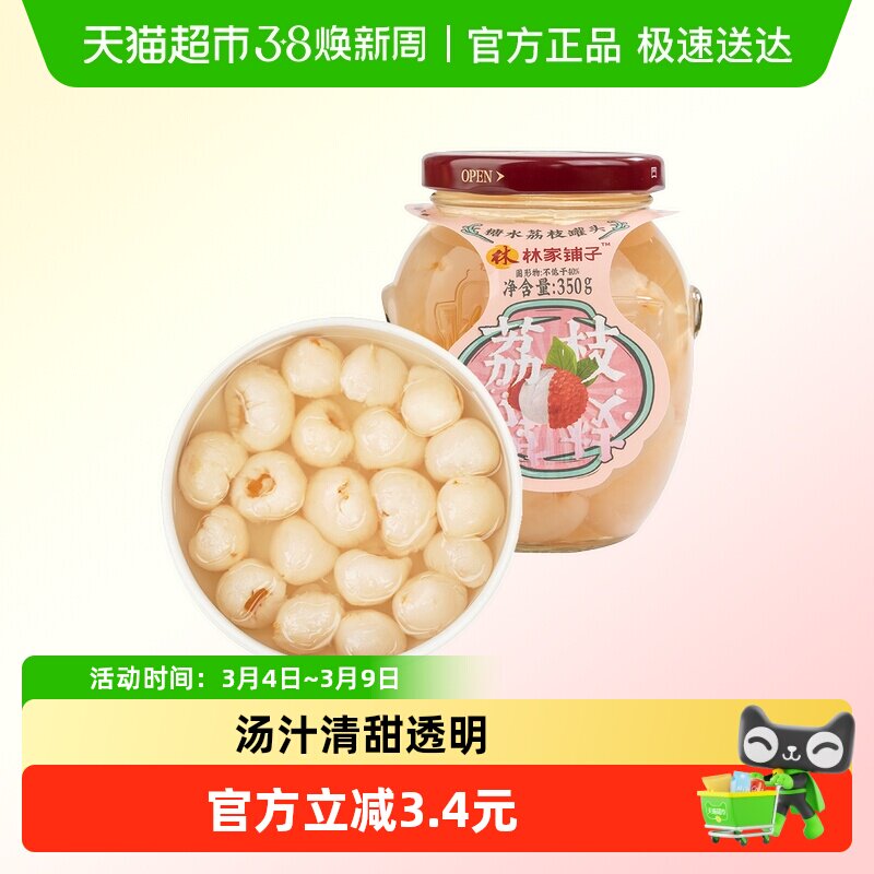 📚 林家铺子糖水荔枝罐头350g新鲜水果玻璃瓶装休闲零食线下商超同款