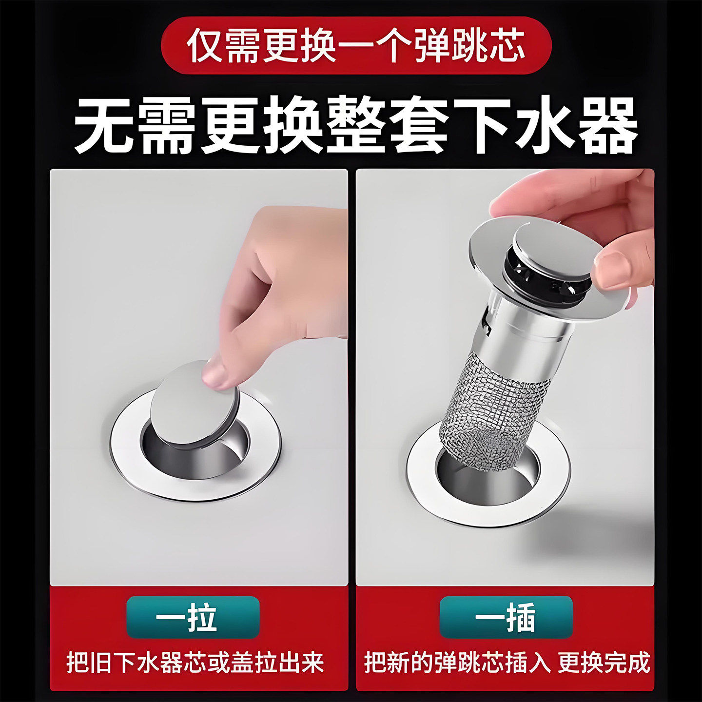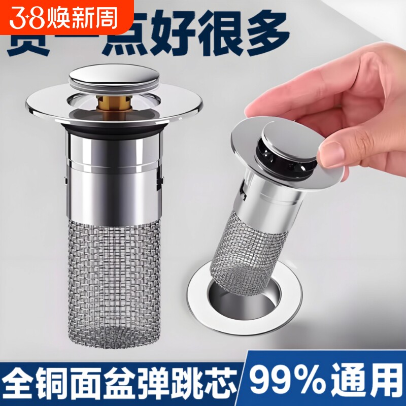 📚 洗手盆漏水塞子按压式弹跳芯通用下水器过滤网洗脸池面盆台盆配件