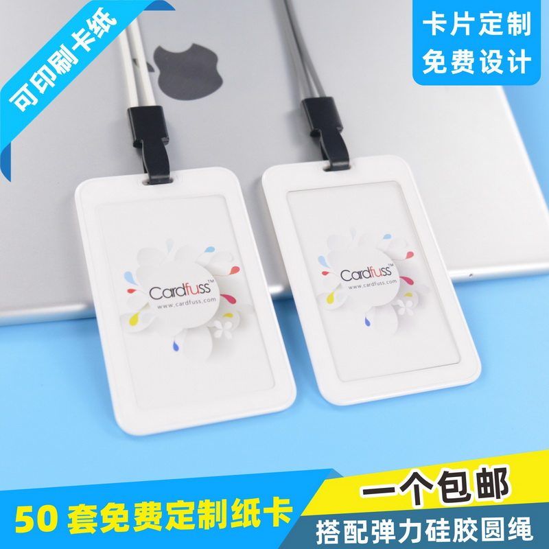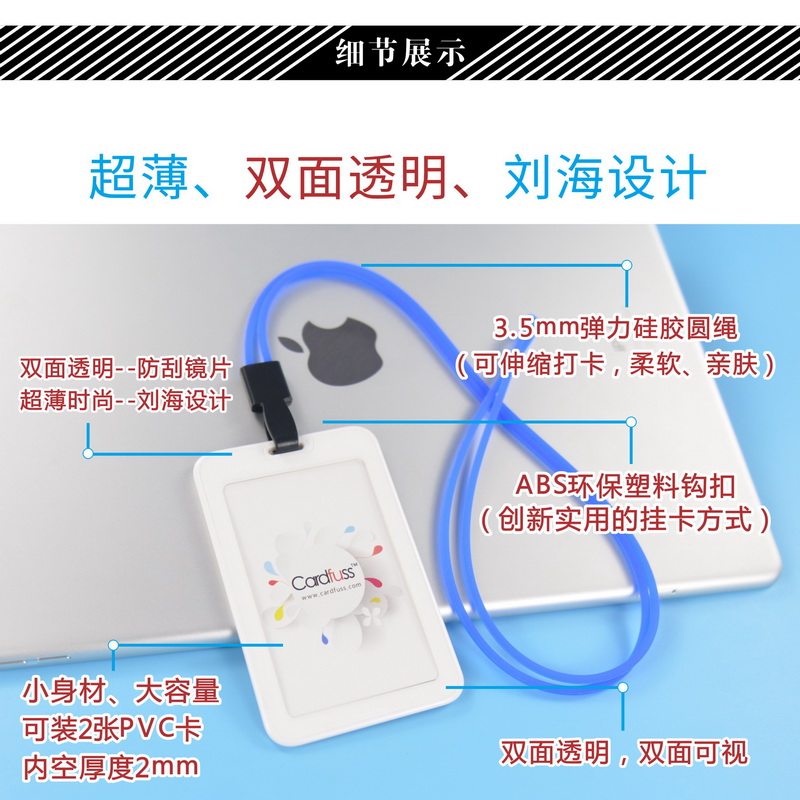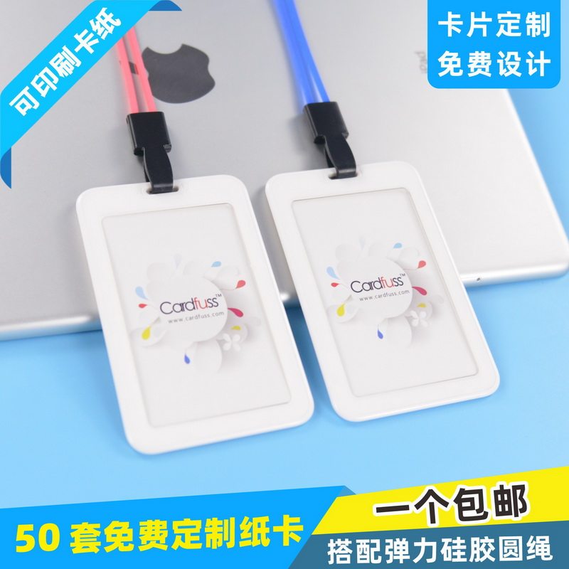 📚 卡富仕刘海设计双面透明识别门禁卡证件卡套带硅胶圆绳挂绳订制做工作证厂牌员工牌挂牌年会出入参会证上岗证