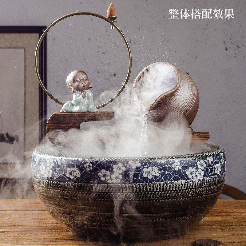 📚 喷泉配件鱼缸循环小号流水自制出水口摆件陶瓷装饰器假山中式陶罐