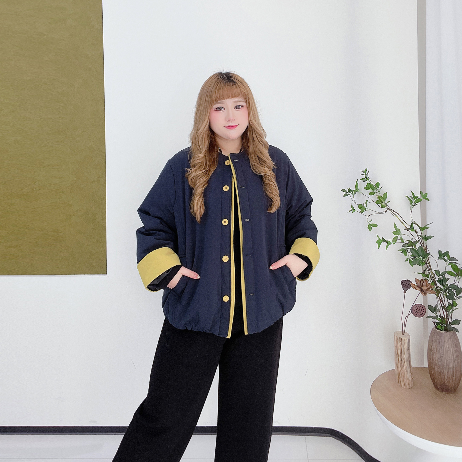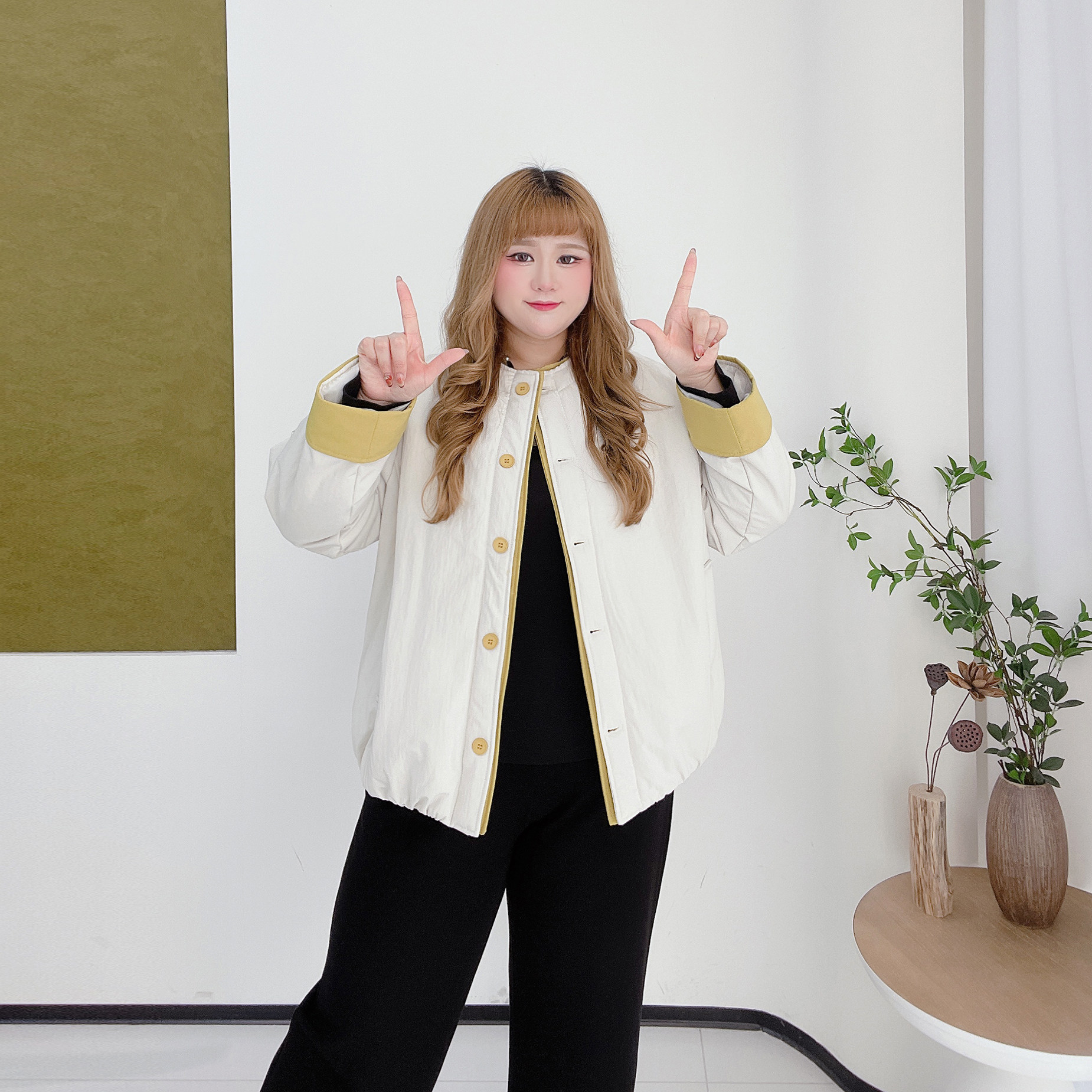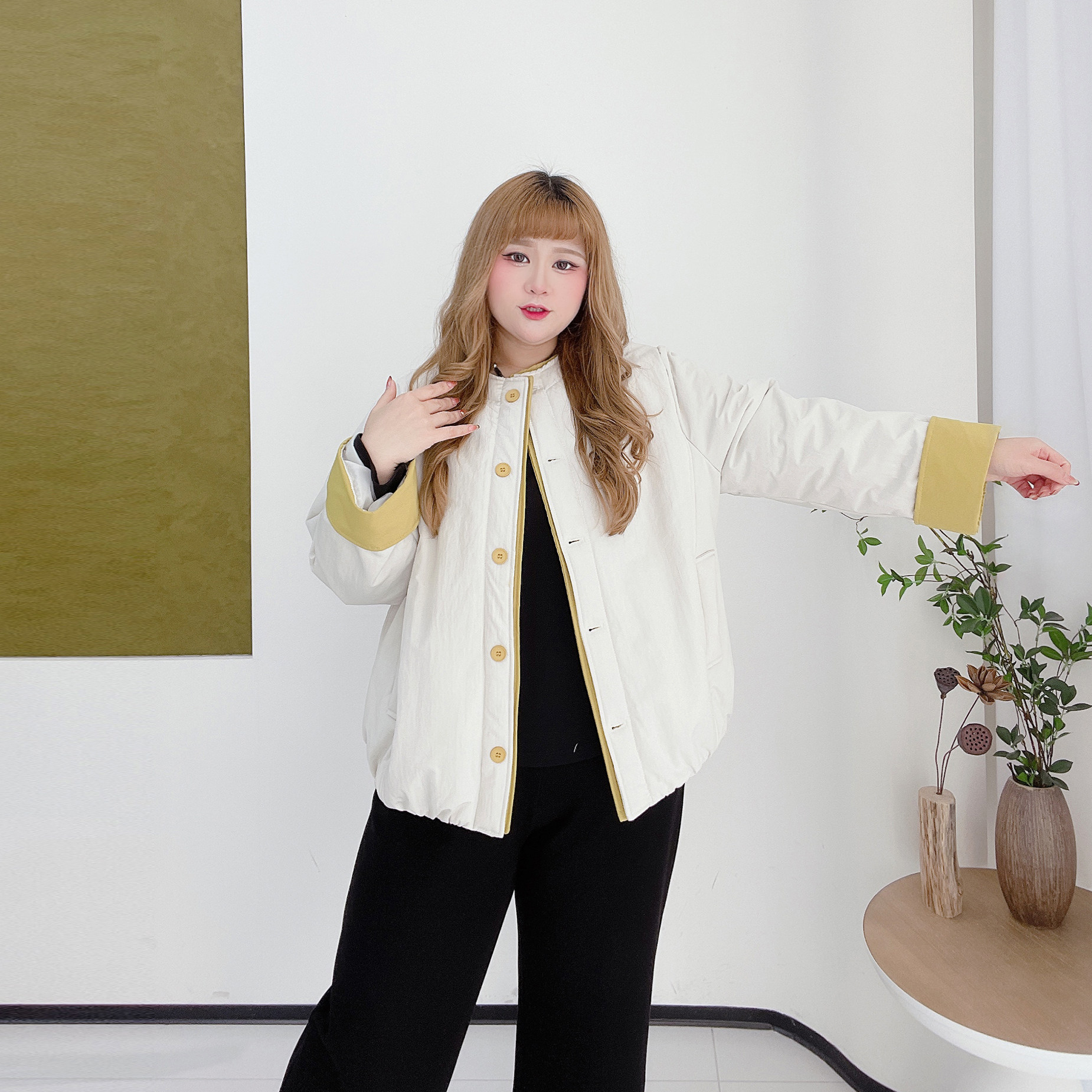 📚 休闲风百搭遮肉夹克外套胖莹莹大码女装冬季减龄轻薄撞色保暖棉服
