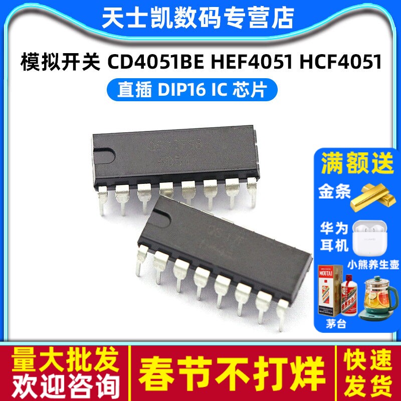 📚 模拟开关 CD4051BE HEF4051 HCF4051 DIP16 IC 芯片 (2个)