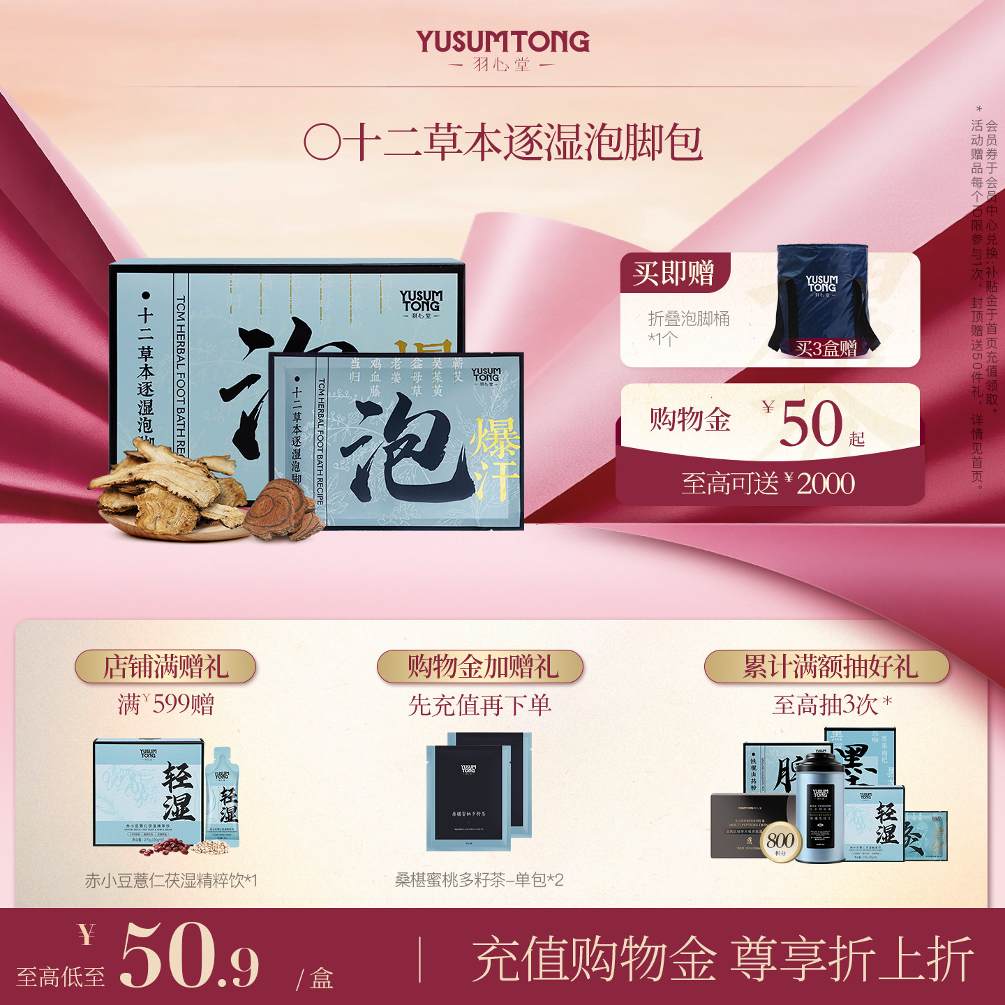 📚 羽心堂艾草叶生姜驱寒暖身湿气调理养生家用泡脚足浴包
