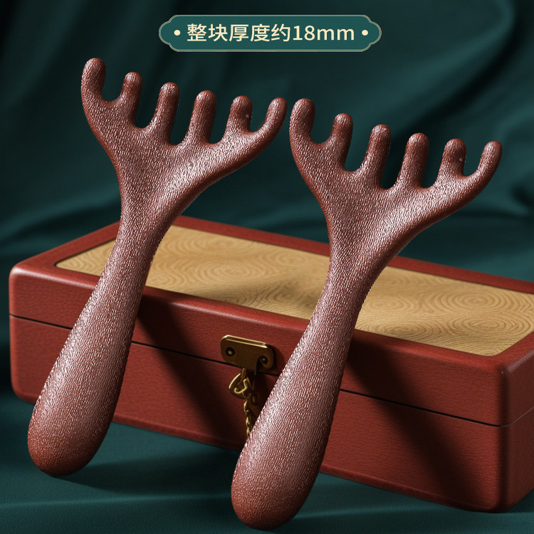 📚 六爪鹿角头部按摩梳头皮经络梳抓头挠头刮痧养生拨筋棒头疗