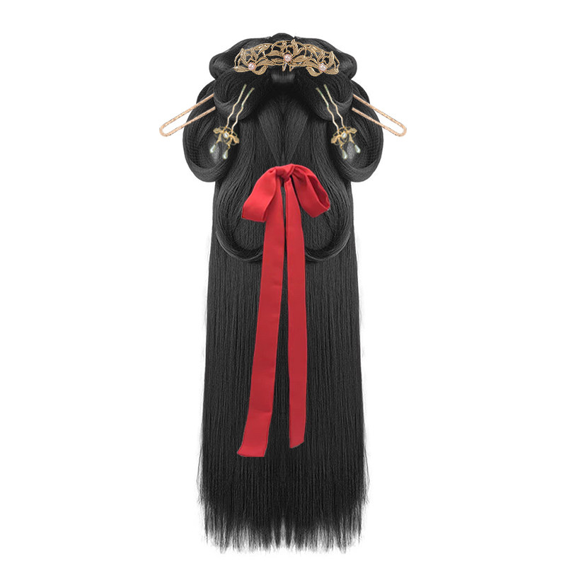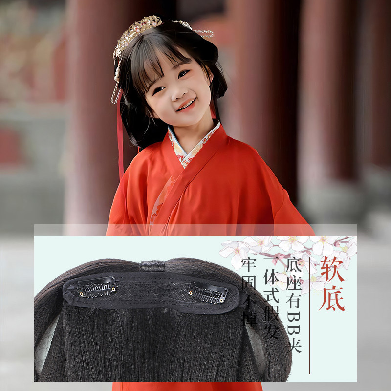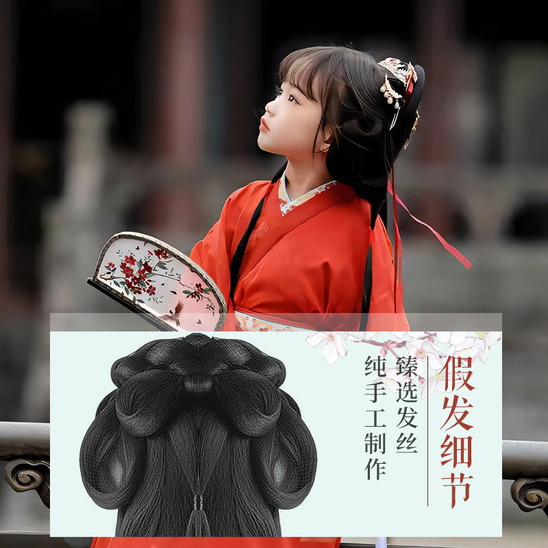 📚 儿童战国袍古风汉服一体式假发头饰女童古装魏晋风盘发发髻发饰