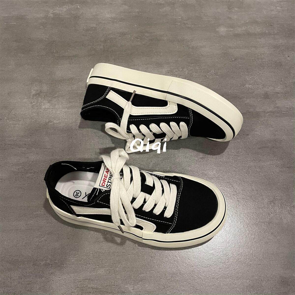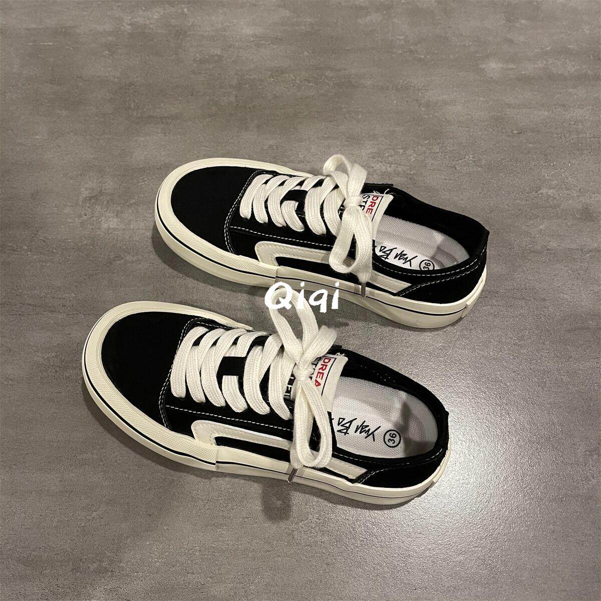 📚 七七主人家 黑色帆布鞋女2023夏季新款薄款复古经典百搭板鞋女ins