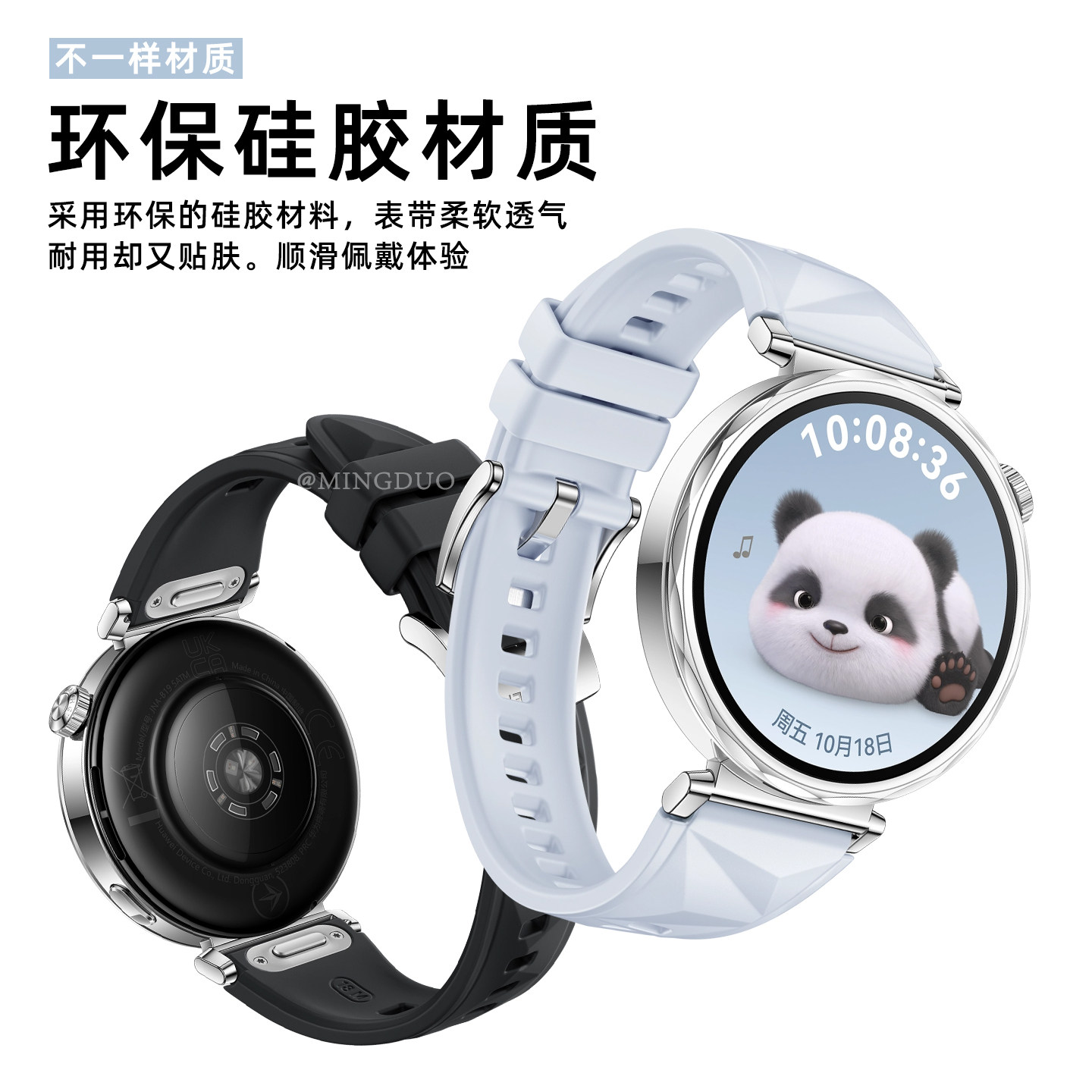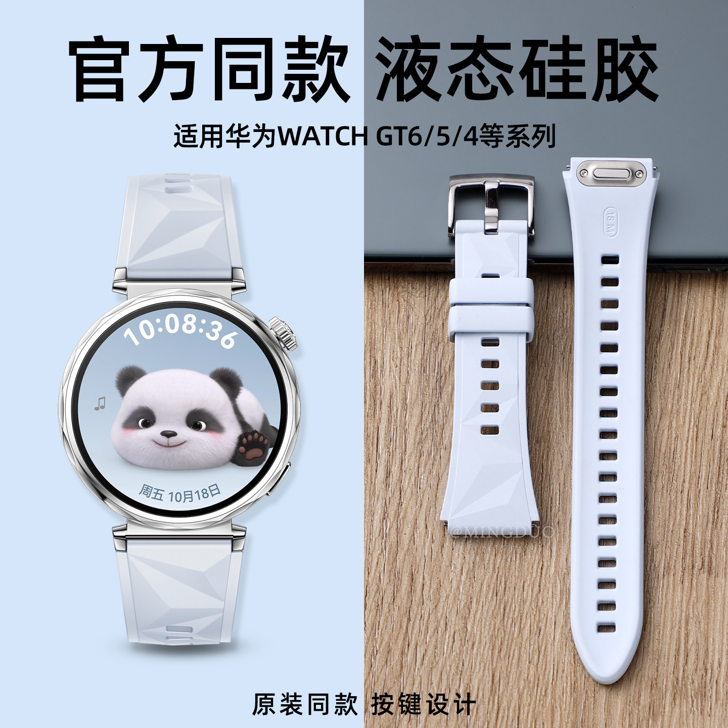 📚 适用华为gt5表带gt4手表新款pro秋冬watch5女款运动watchgt6女表带智能女士41mm硅胶按键款按压式冰晶蓝透气