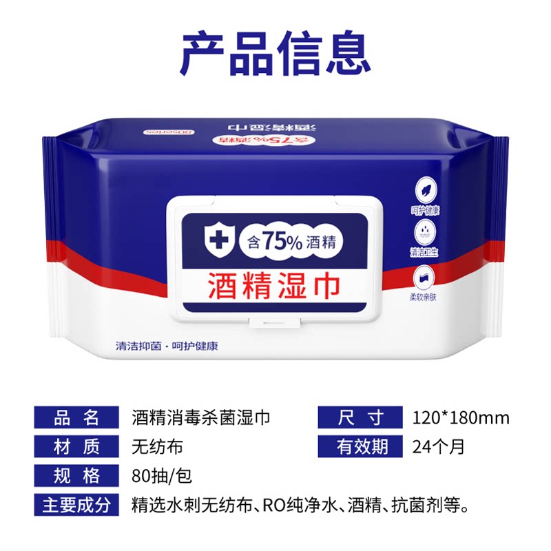 📚 80抽10包装!含75度酒精消毒湿巾家用卫生杀菌专用湿纸巾大包抑菌