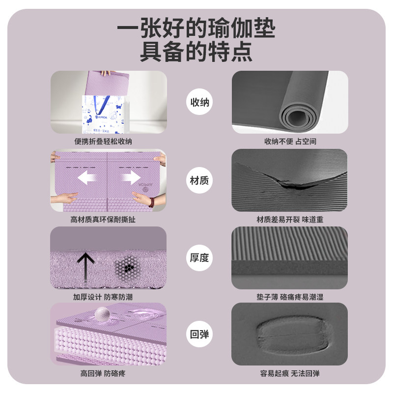 📚 艾米达折叠瑜伽垫便携无味防滑tpe女生专用地垫家用健身午休午睡