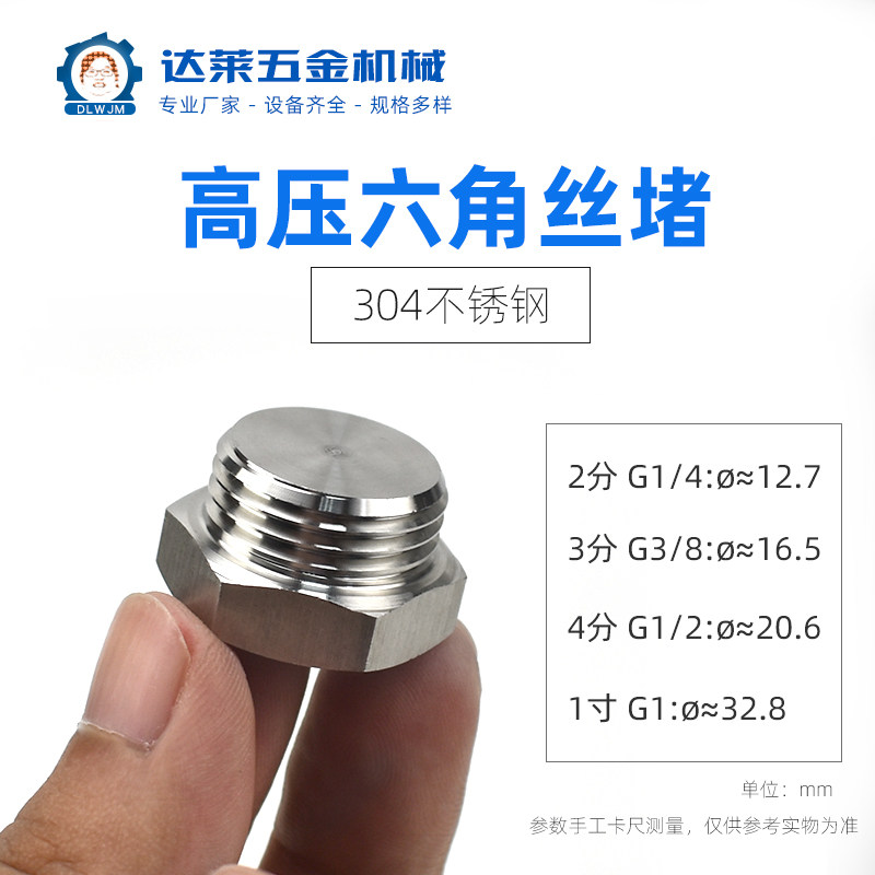 📚 304不锈钢堵头英制G外六角外丝堵头PT管堵油塞螺塞2分3分4分1寸
