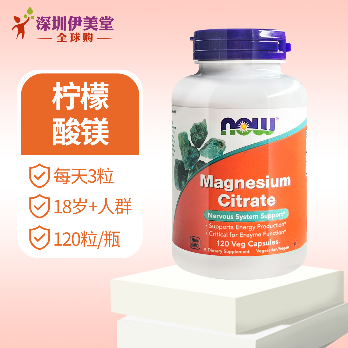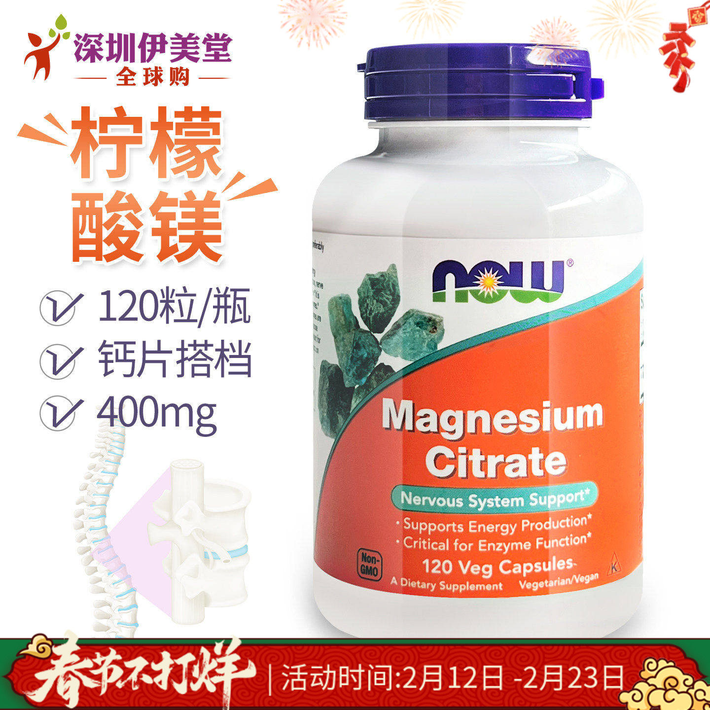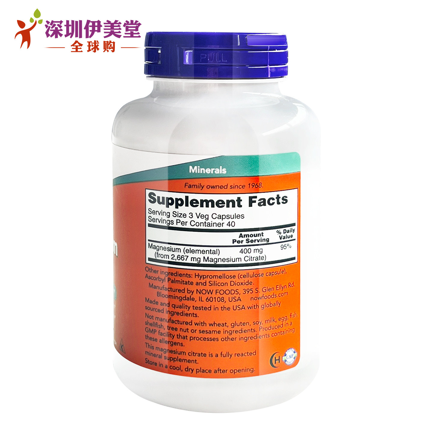 📚 美国now foods诺奥柠檬酸镁胶囊400mg120粒 镁补充剂成人镁元素