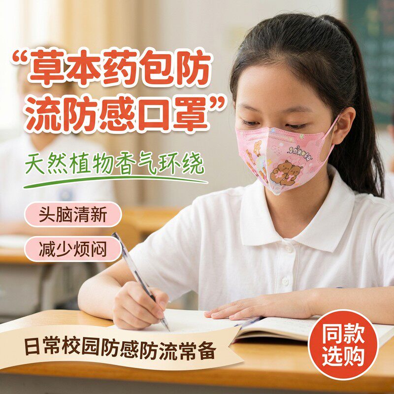 📚 儿童专用中药包防尘防流口罩小孩防感透气不闷卡通可爱儿童口罩