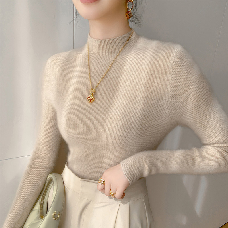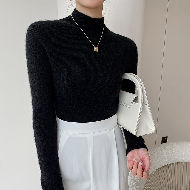 📚 今年流行半高领全羊绒衫女配大衣打底衫黑色修身毛衣气质内搭上衣