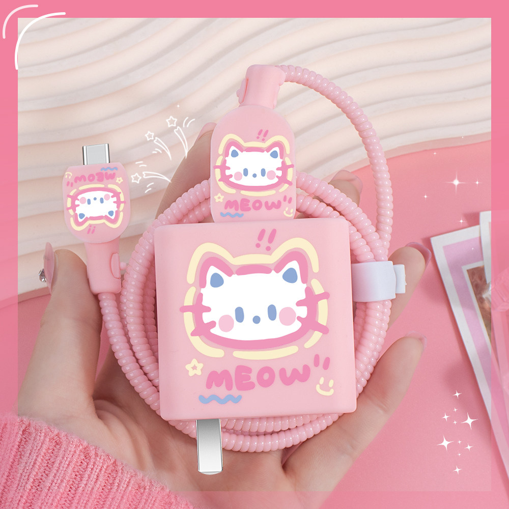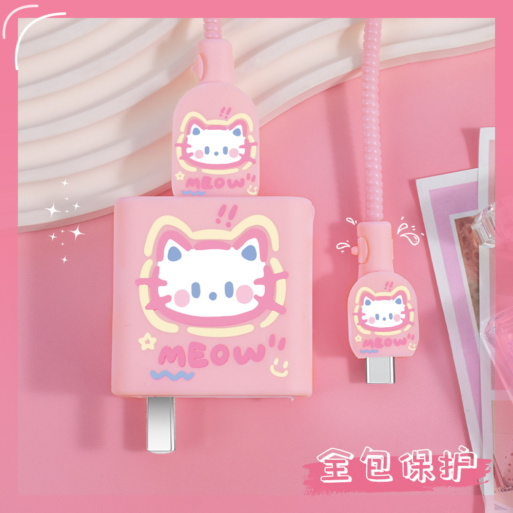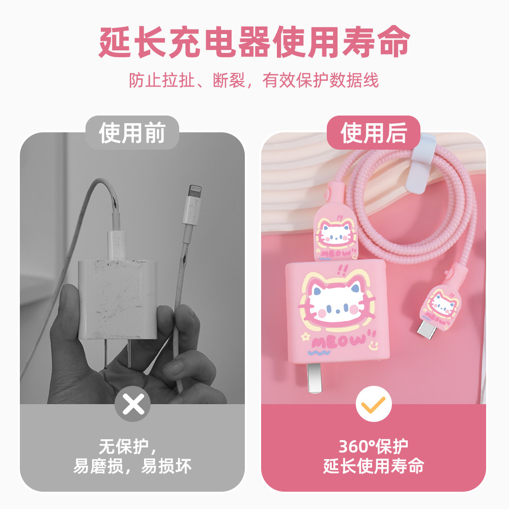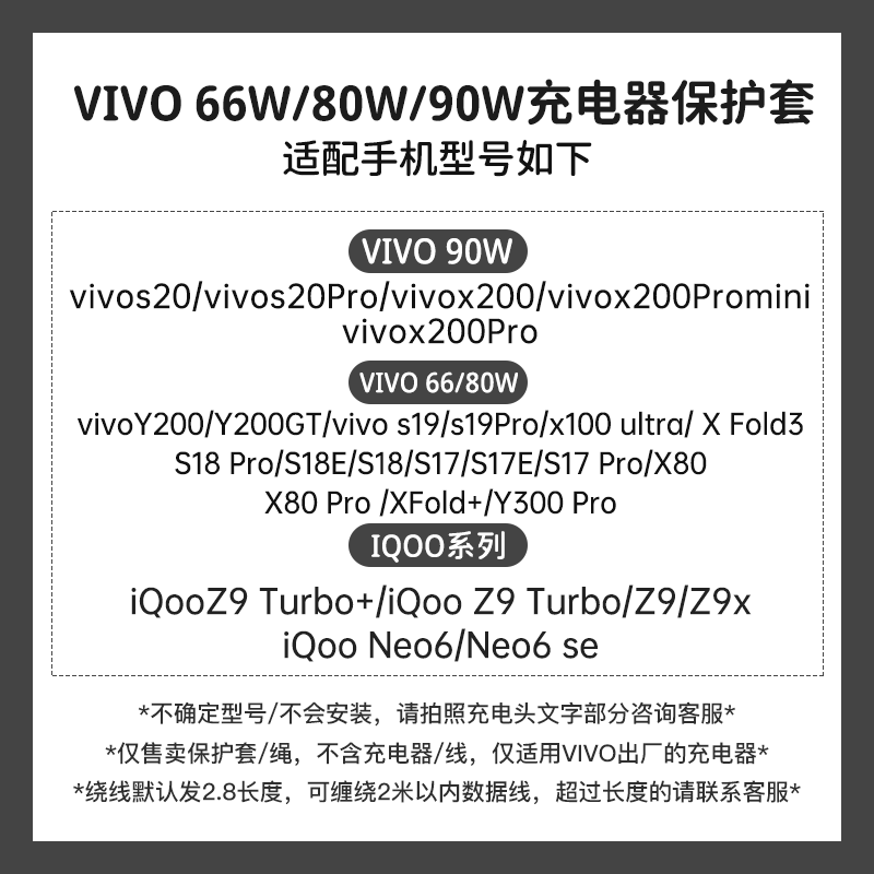📚 适用于iQOOZ9X充电器充电线保护套90W快充头套vivoS20Pro充电线缠绕绳硅胶套vivox200/x200pro卡通可爱手机壳