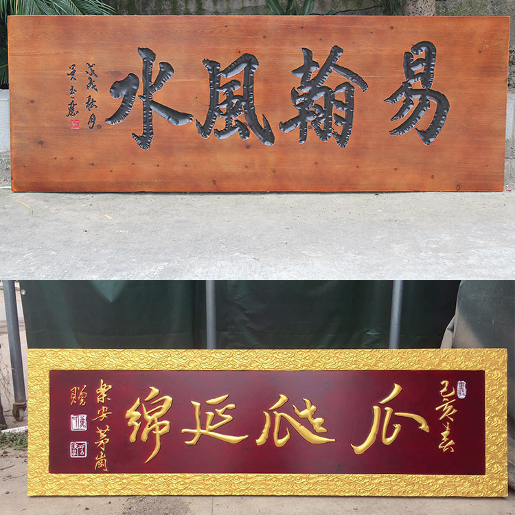 📚 实木牌匾定做木质祠堂仿古木头招牌定制门头雕刻圆弧对联匾额刻字