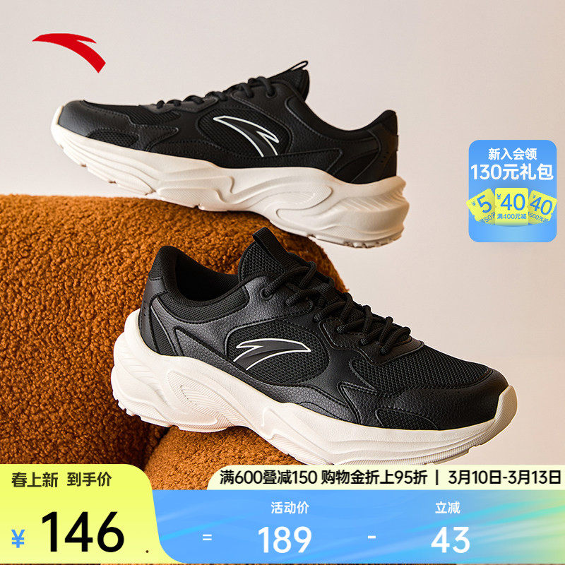 📚 安踏革面舒适老爹鞋休闲鞋男春季新款潮流百搭黑色皮面运动鞋子