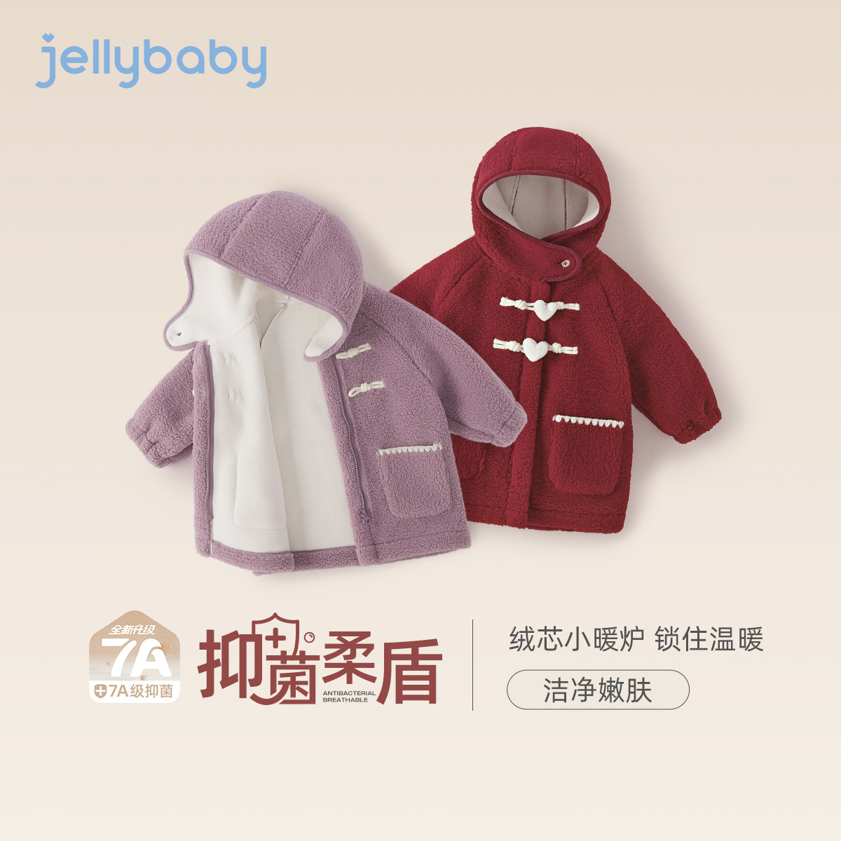 📚 [抗菌蓄热]女童秋冬外套宝宝洋气连帽小童加绒中长款儿童红色女孩