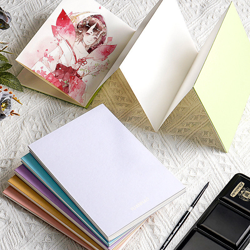 📚 风琴水彩本棉浆细纹加厚300g美术生专用折页绘画本旅行随身便携全棉手账本32k户外写生水彩纸本子空白画画本
