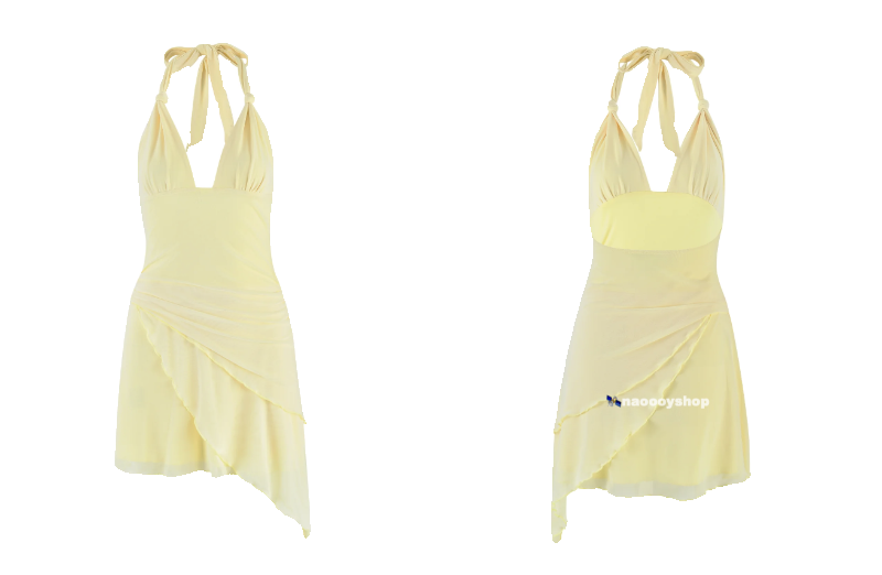 📚 正品代购tigermist法式浪漫复古鹅黄色绳结吊带裹胸连衣裙短裙