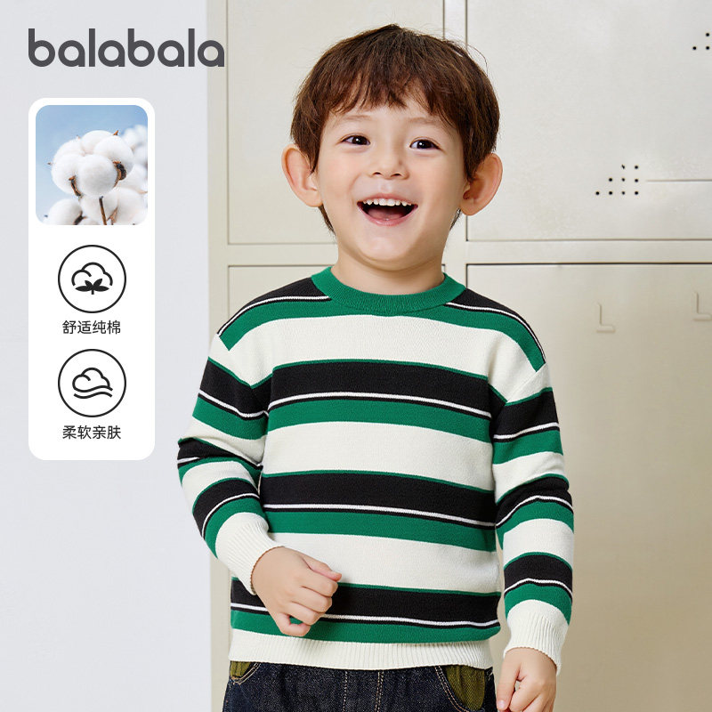 📚 巴拉巴拉儿童毛衣男童条纹打底衫大童纯棉针织衫秋冬季新款童装潮