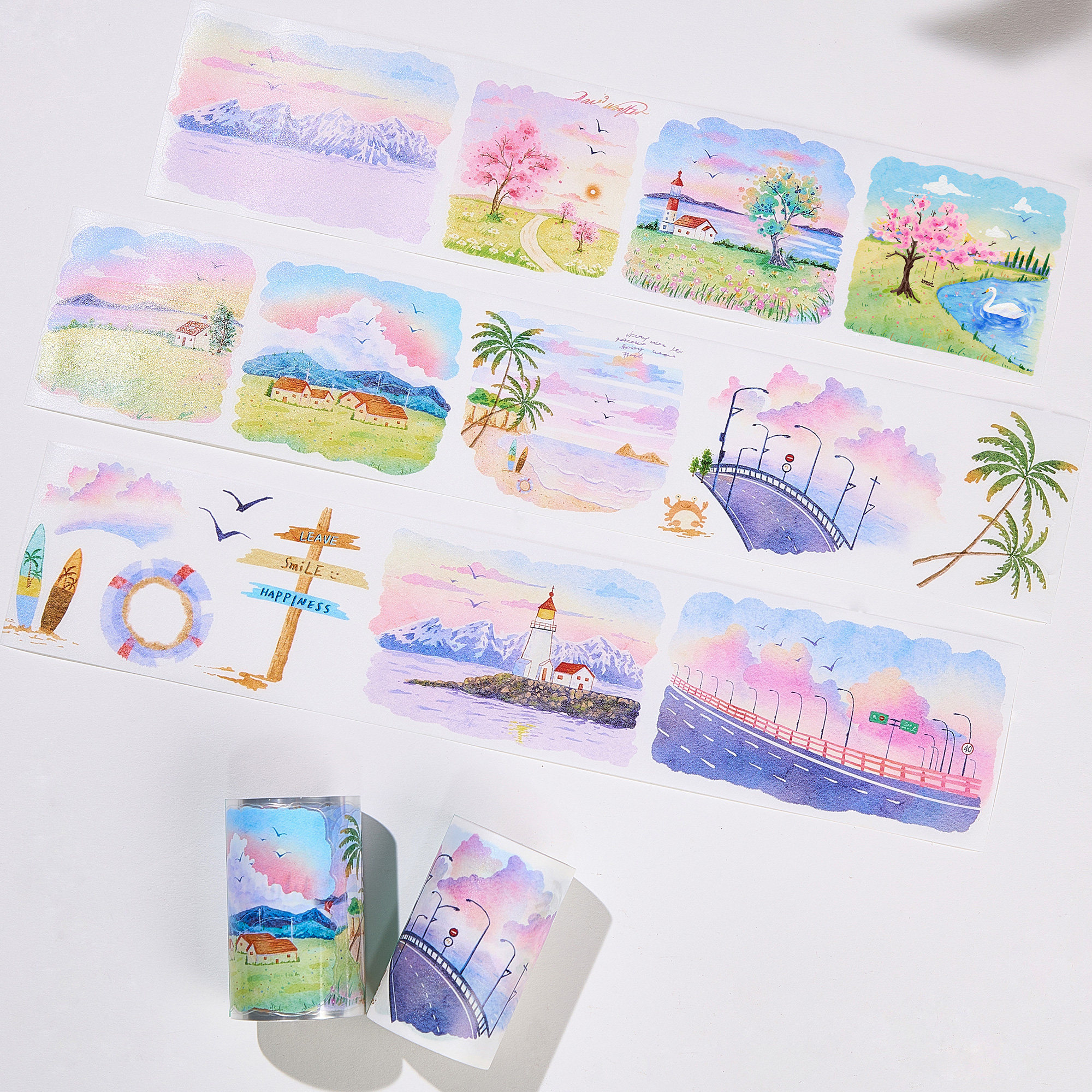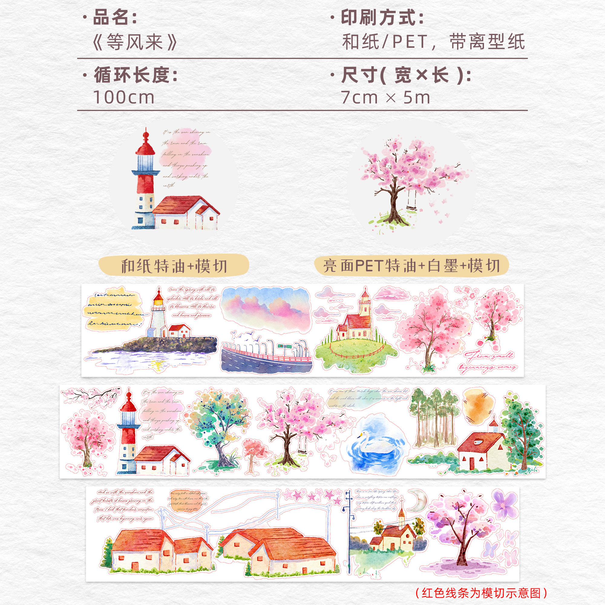 📚 WT品牌原创 等风来 在路上 造景风景 手帐ins风礼物 模切免剪胶带