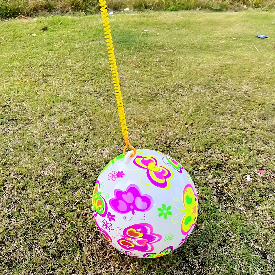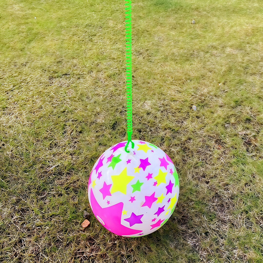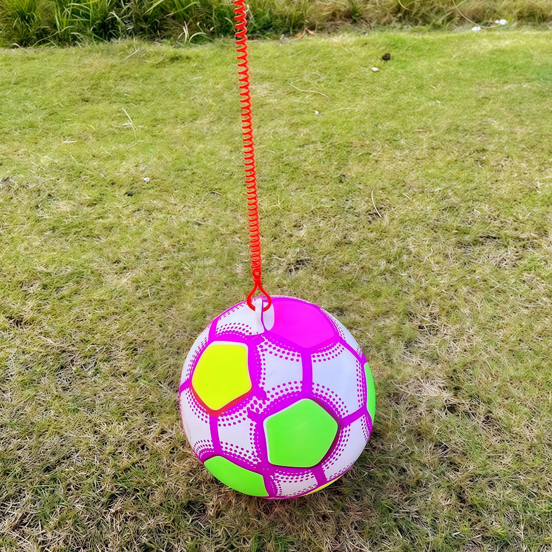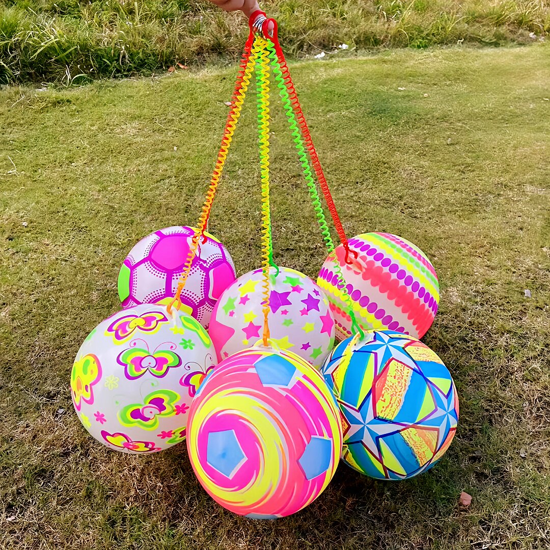 📚 网红链子彩虹球带绳子弹力球手提充气足球儿童玩具摆摊小商品批发