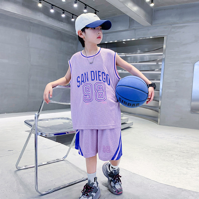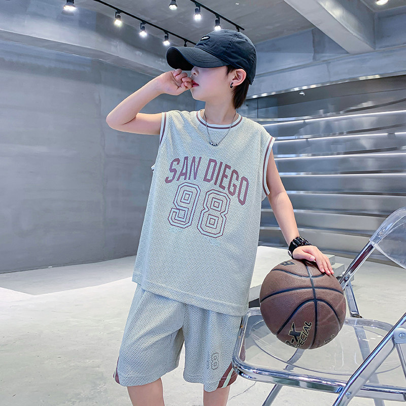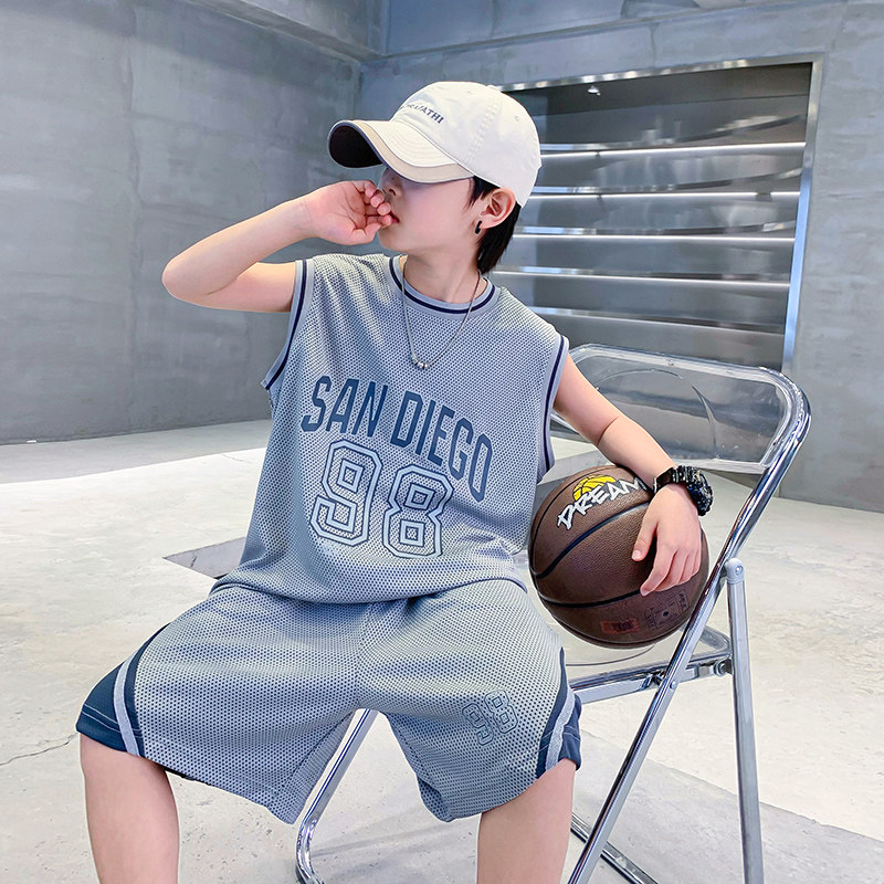 📚 男童夏装速干运动篮球服背心套装2025新款儿童男孩夏季炸街衣服潮