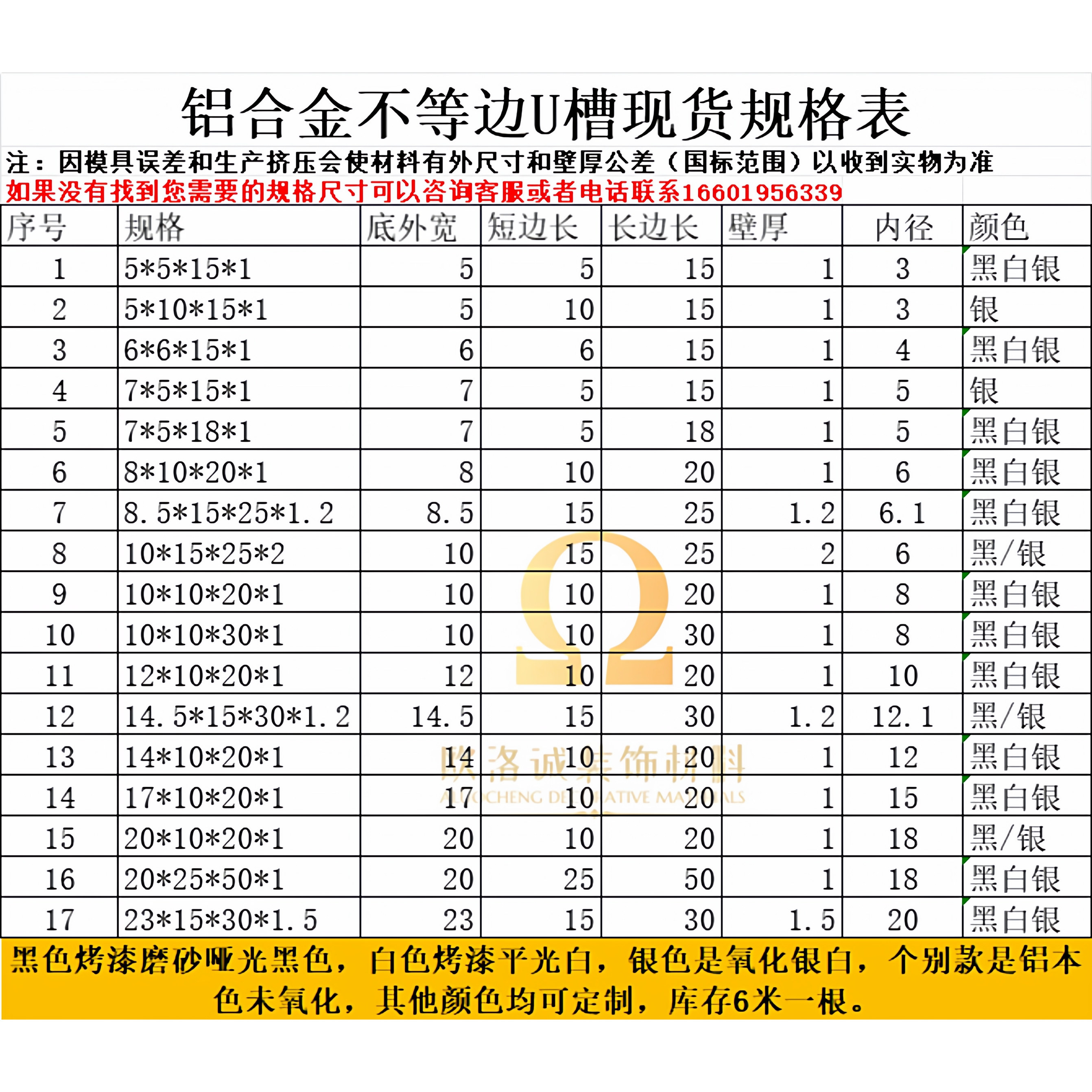 📚 铝合金不等边u型槽 广告牌挂画卡槽木板包边装饰条型材瓷砖收边条