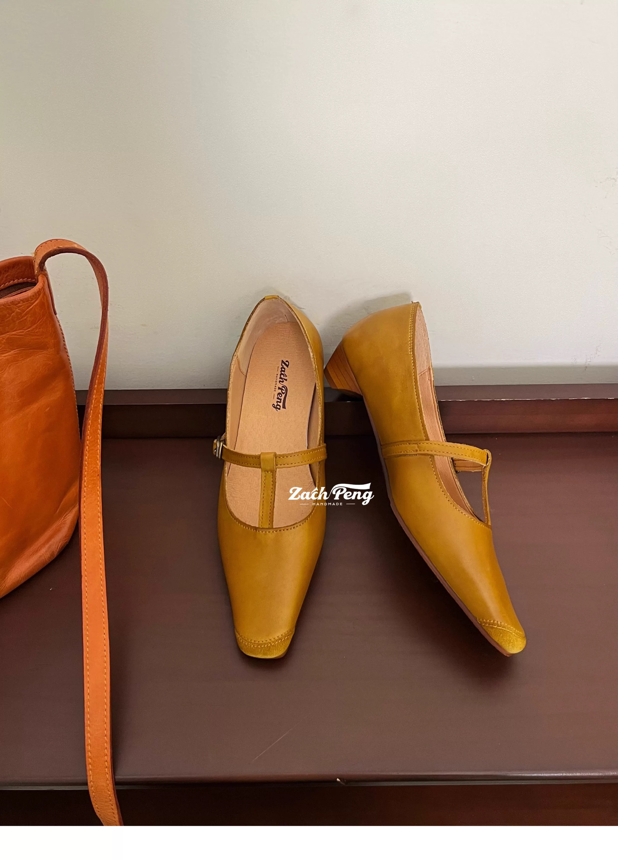 📚 ZACHPENG法式玛丽珍鞋女2025春秋方头低跟粗跟中跟真皮浅口单鞋女