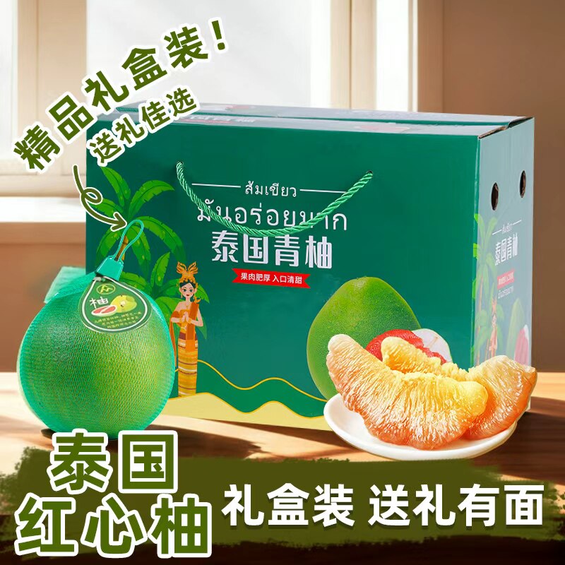 📚 泰国红心柚翡翠金柚大果应当季正宗青柚青皮红蜜柚子现摘水果包邮
