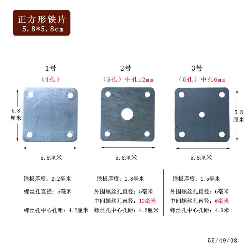 📚 方型6公分铁冲片支架焊接固定带孔径12mmM自攻螺丝孔方管底座铁板