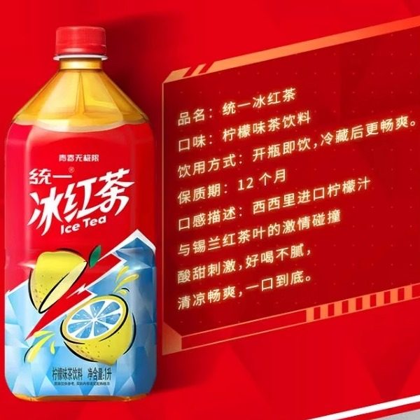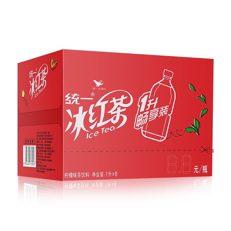 📚 统一冰红茶1000ml*8瓶整箱柠檬味瓶装茶饮料青春无极限1L大瓶