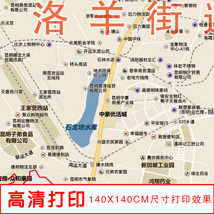 📚 呈贡盘龙五华官渡西山晋宁东川安宁市区富民宜良嵩明县城地图海报